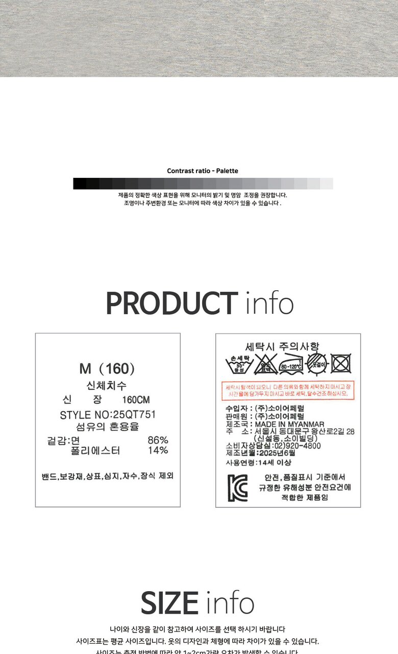 1. 제품 소재 (섬유의 조성 또는 혼용률을 백분율로 표시, 기능성인 경우 성적서 또는 허가서) 상품상세참조