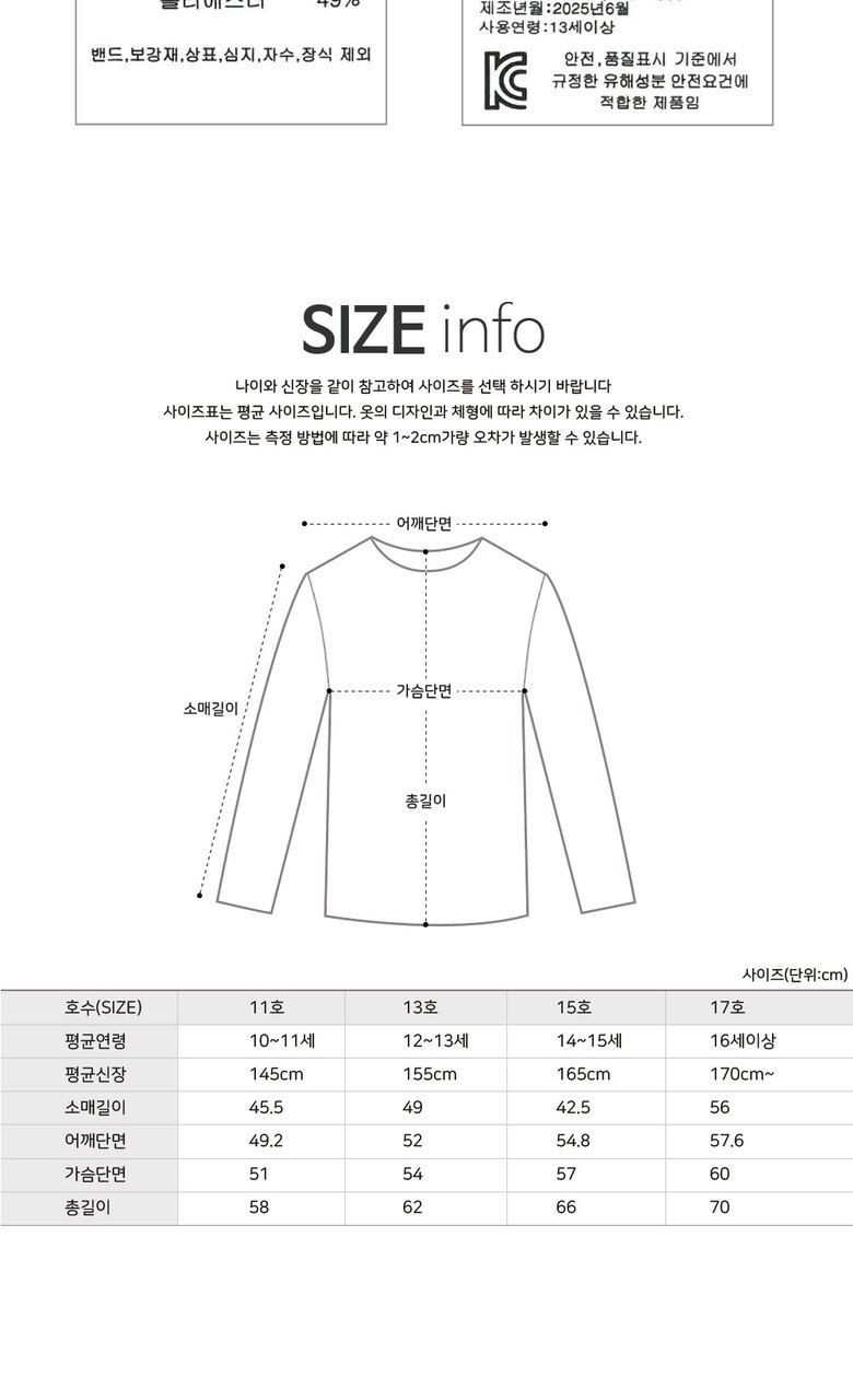 1. 제품 소재 (섬유의 조성 또는 혼용률을 백분율로 표시, 기능성인 경우 성적서 또는 허가서) | 상품상세참조 |