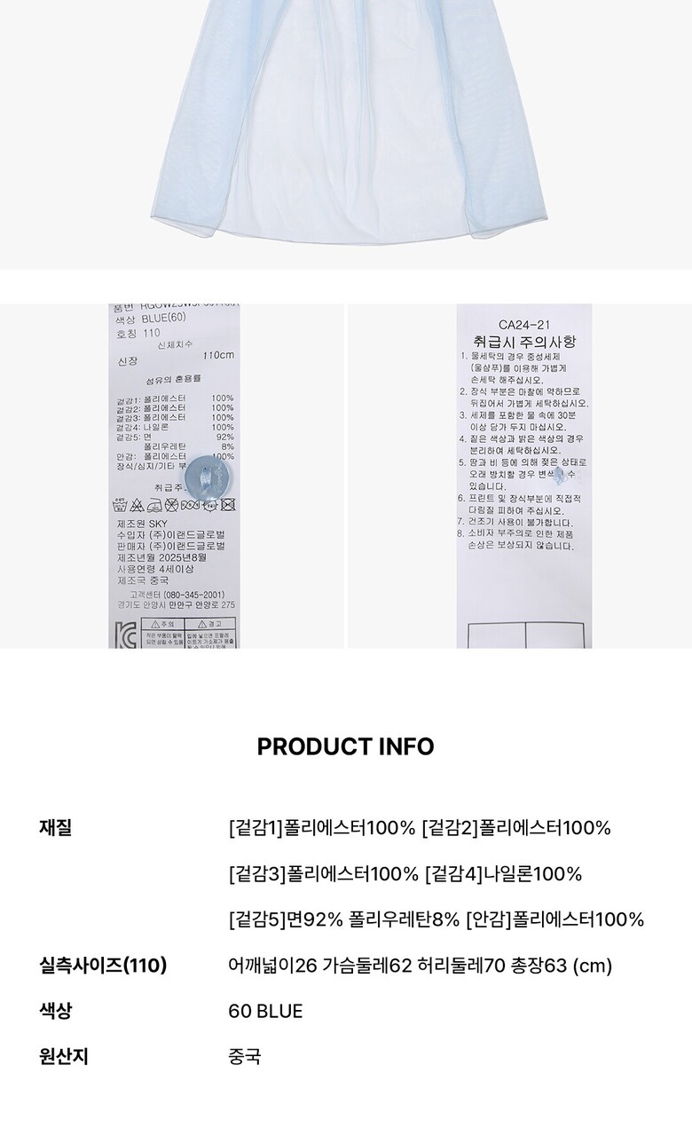 6. 세탁방법 및 취급시 주의사항 | 상품상세참조 |
