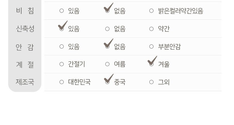 1. 제품 소재 (섬유의 조성 또는 혼용률을 백분율로 표시, 기능성인 경우 성적서 또는 허가서) | 상세페이지 참조 |