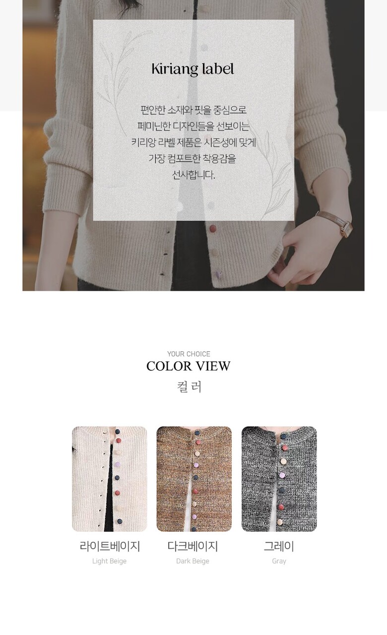 [키리앙] 미셀 컬러 단추 니트 가디건