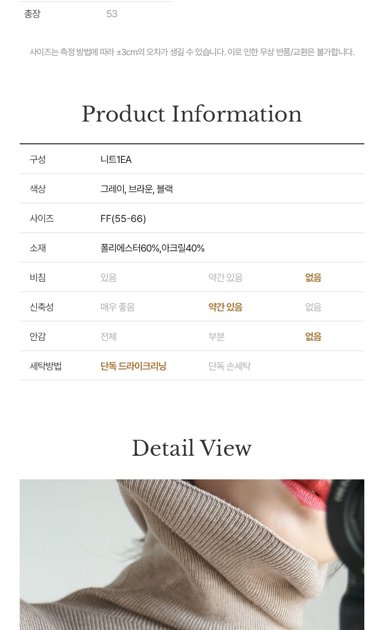 1. 제품 소재 (섬유의 조성 또는 혼용률을 백분율로 표시, 기능성인 경우 성적서 또는 허가서) | 폴리에스터60%,아크릴40% |