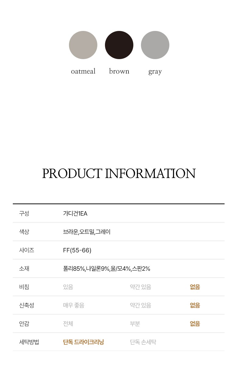 1. 제품 소재 (섬유의 조성 또는 혼용률을 백분율로 표시, 기능성인 경우 성적서 또는 허가서) | 폴리에스테르 85%, 나일론 9%, 울/모 4%, 스판 2% |