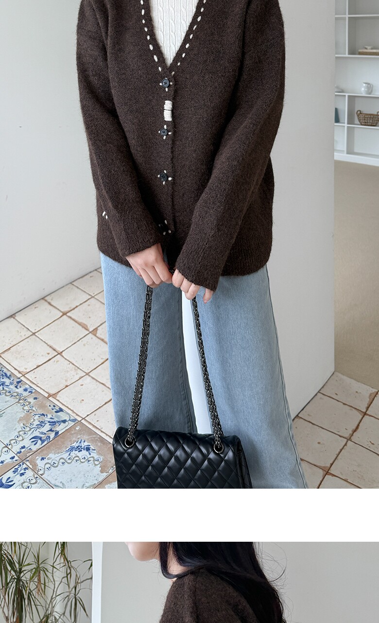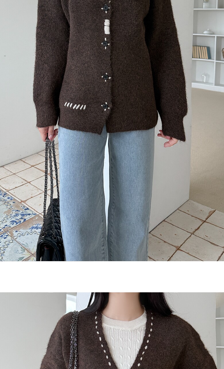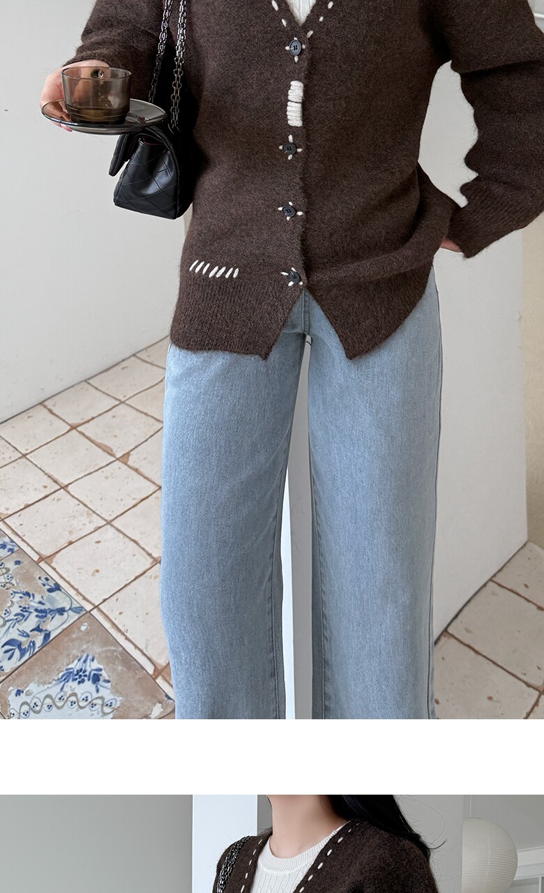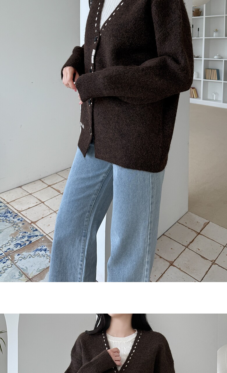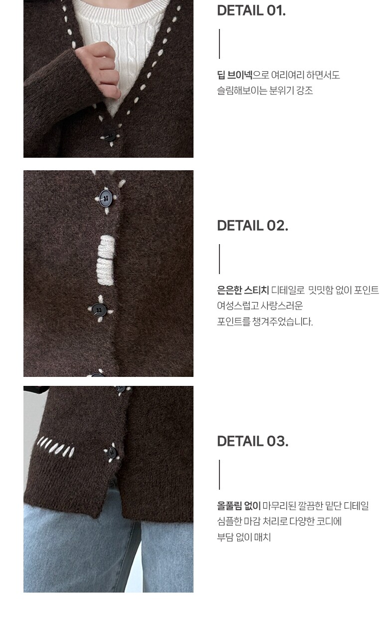 KARRA 스티치루즈브이넥가디건_A5F0355