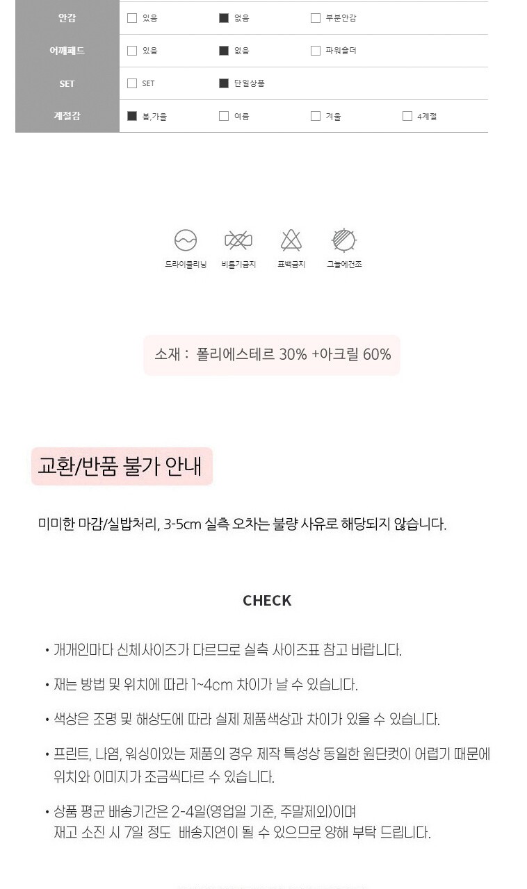 6. 세탁방법 및 취급시 주의사항 | 상세설명참고 |