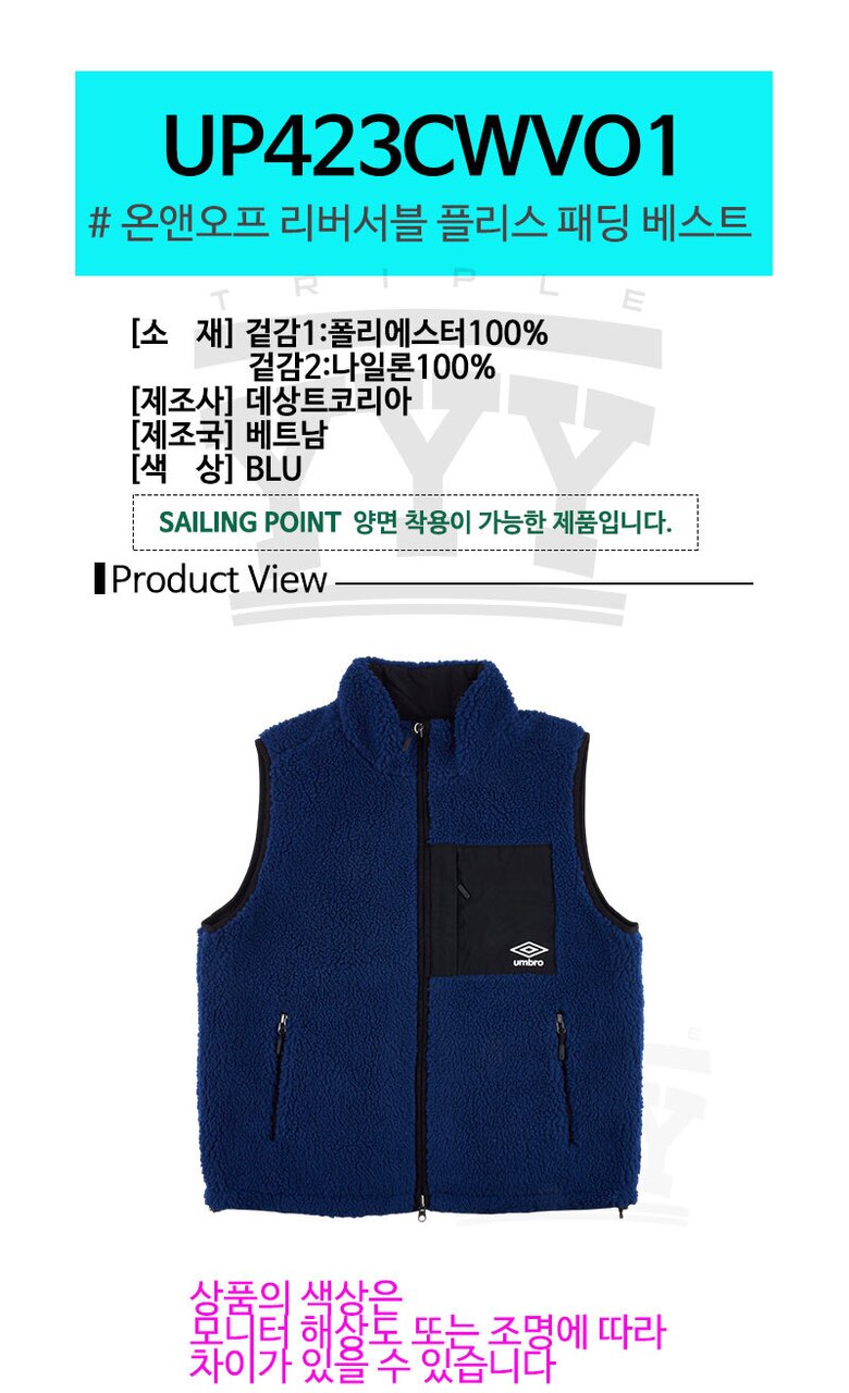 #엄브로 #남자 #남성 #여자 #여성 #온앤오프 #리버시블 #양면 #플리스 #패딩 #베스트 #조끼 #UP423CWVO1 #엄브로 #Umbro