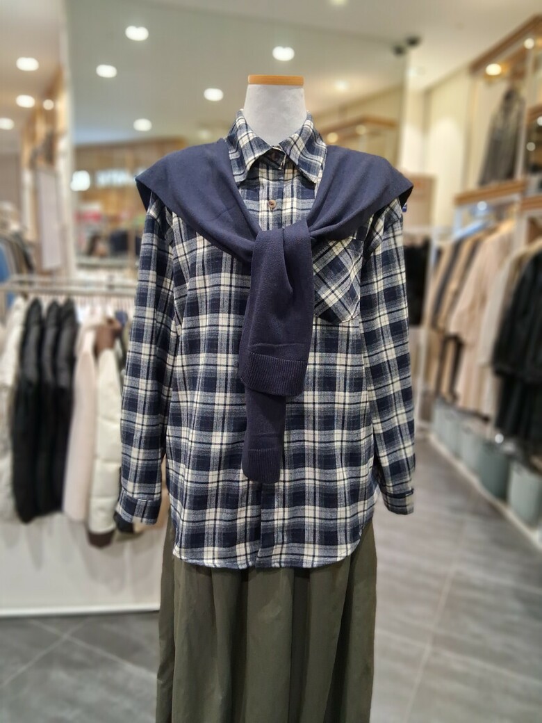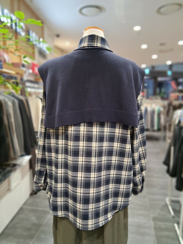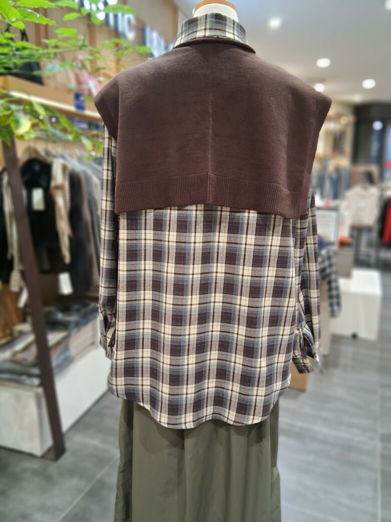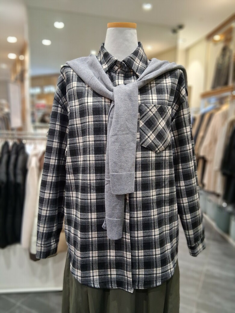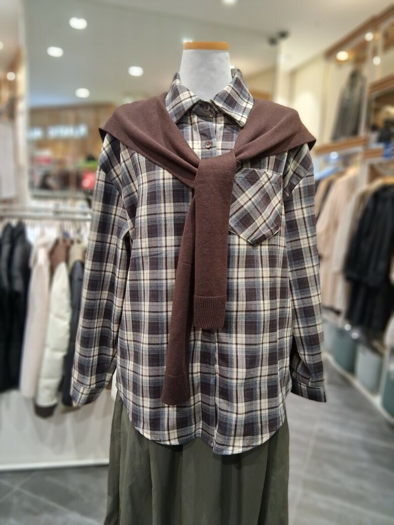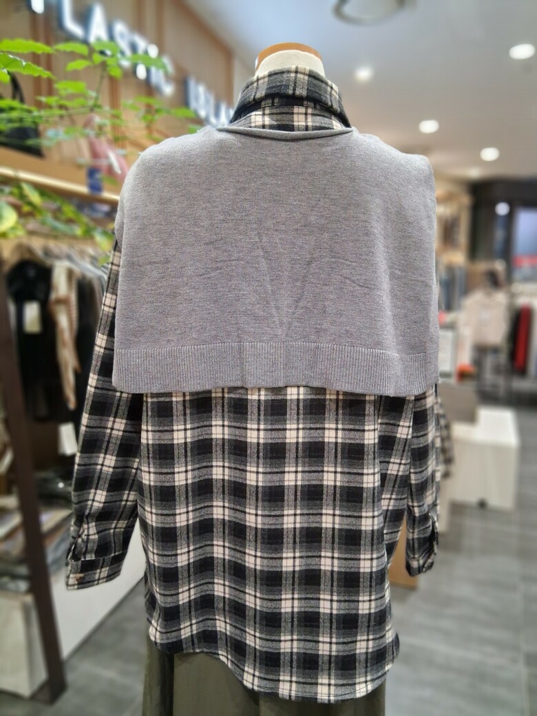 니트 숄 세트 체크 블라우스 PR7XD3B0