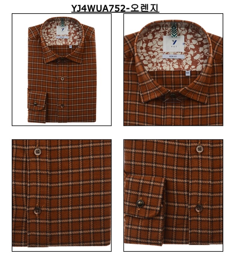 YJ4WUA752_울혼방 기모 체크 캐주얼 슬림 긴소매