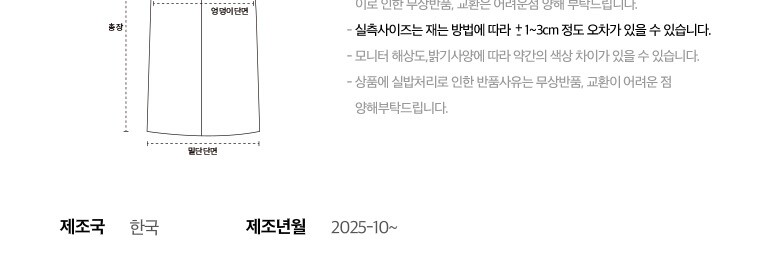 • 처음 배송된 상품상태와 다를 경우(세탁/착용 후 외출하신 경우) 반품이 불가합니다.