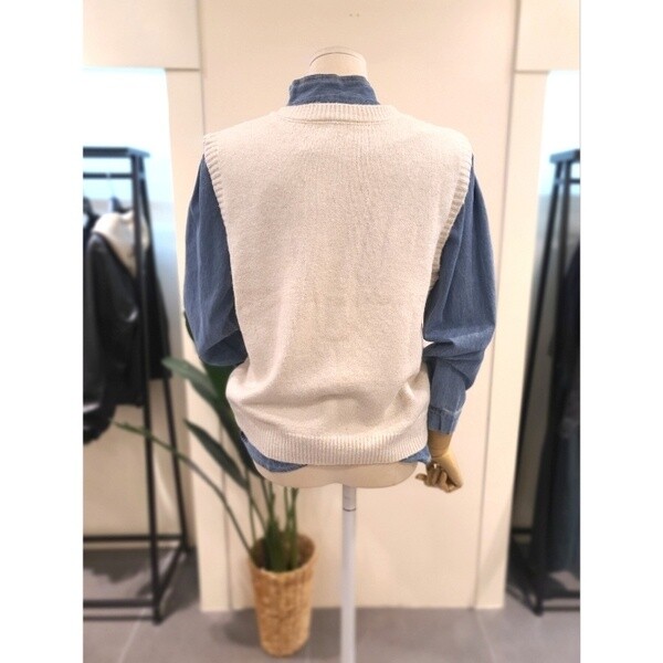 KKVTPA01IV_버튼 패턴 니트 조끼 아이보리