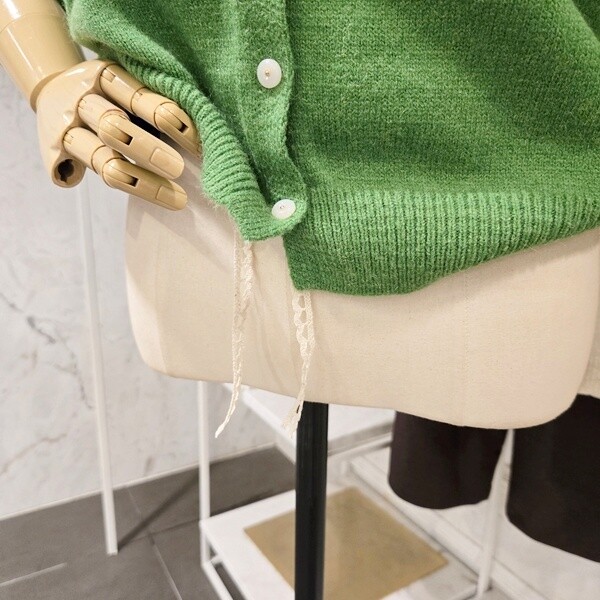 `섬유 특유의 냄새, 마 소재에 올 뭉침, 니트 소재에 특성상 실이 올라와있거나 마감선이 튀어나와있을때 약간의 이염, 잡사, 이중박음 있을수 있으며 이는 불량으로 취급하지 않습니다