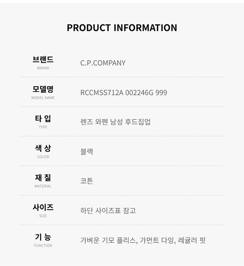 CP컴퍼니 RCCMSS712A 002246G 999 렌즈 와펜 남성 후드집업