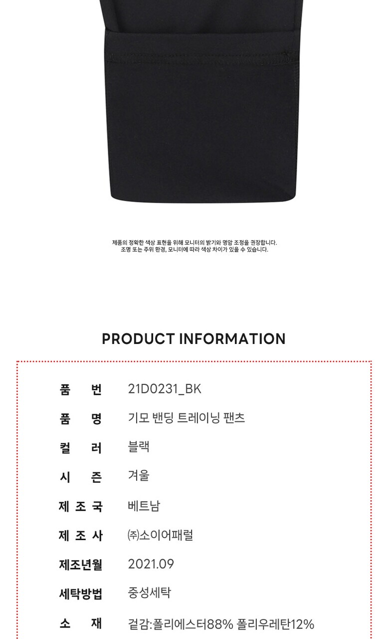 남아 기모 밴딩 트레이닝 팬츠 21D0231_BK