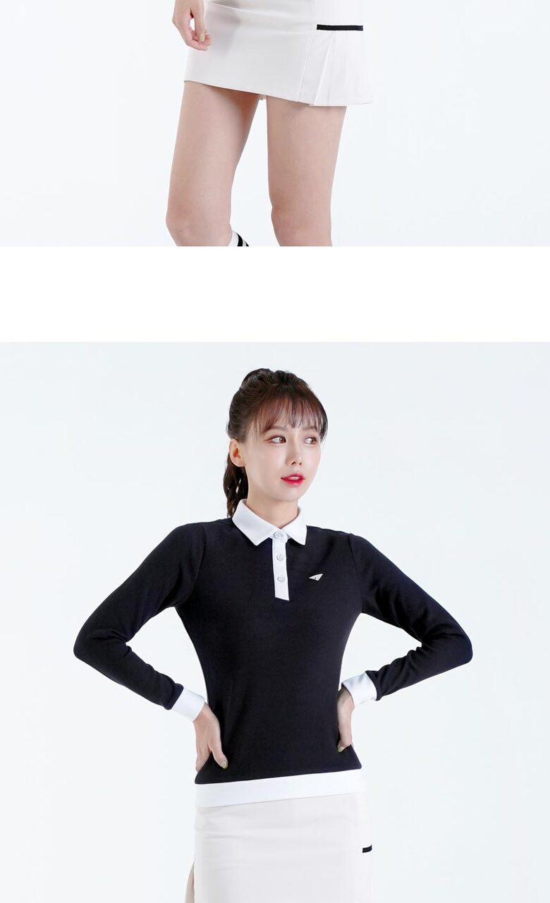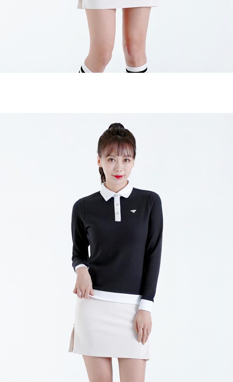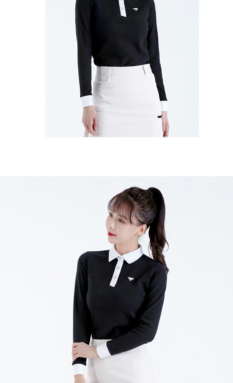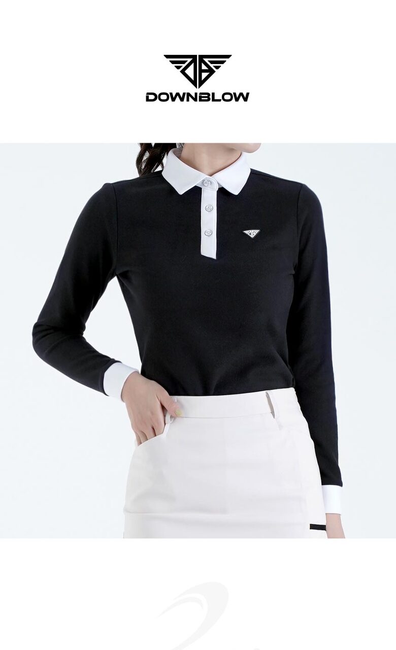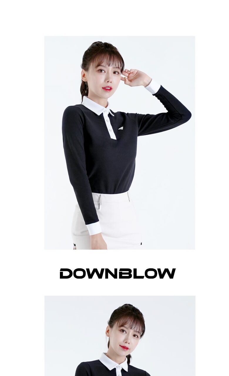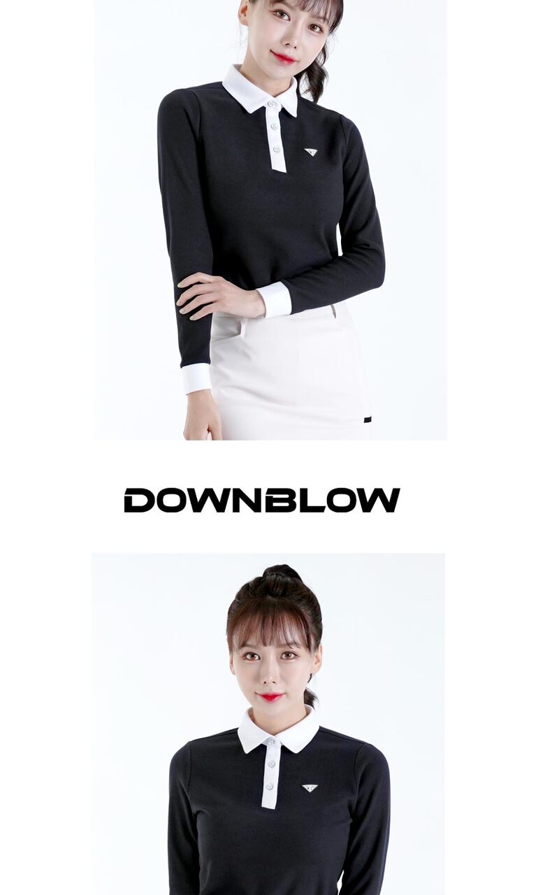 다운블로우 여성 스판 배색 카라 긴팔티셔츠 2105W