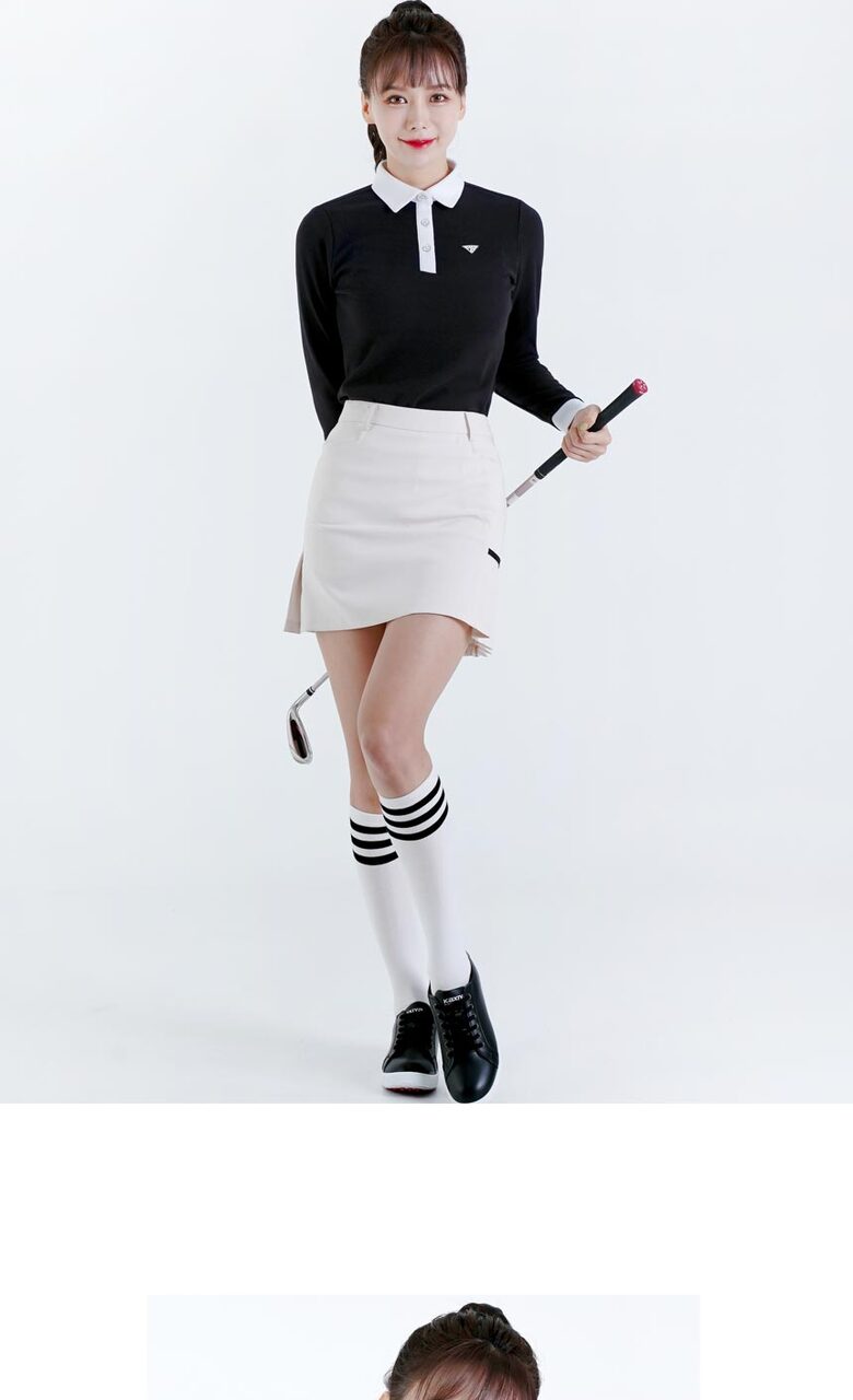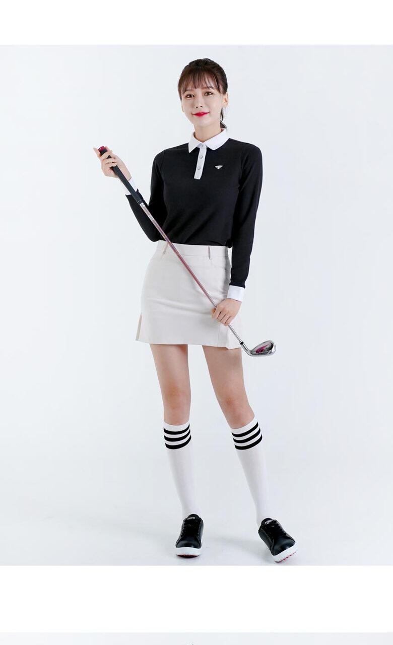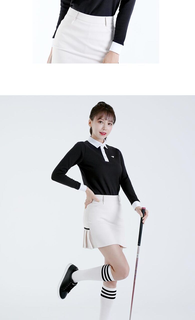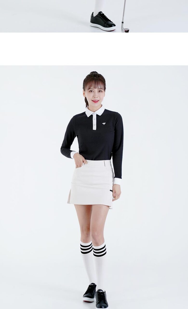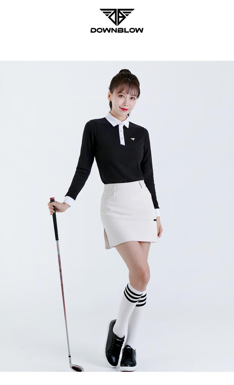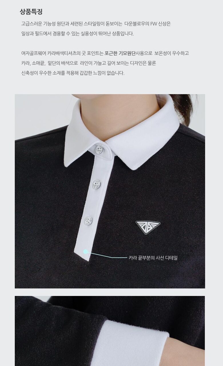 다운블로우 여성 스판 배색 카라 긴팔티셔츠 2105W