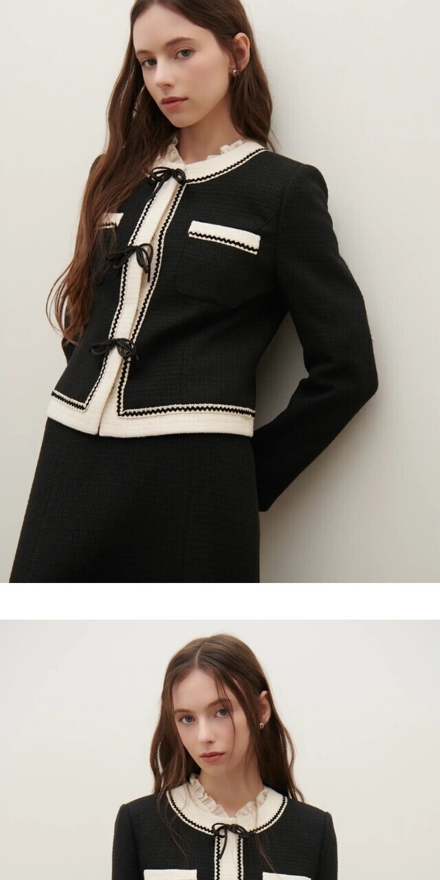 리본 포인트 트위드 자켓S251m101