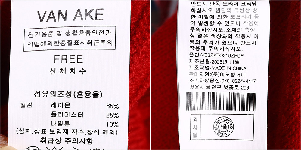 | 1. 제품 소재 (섬유의 조성 또는 혼용률을 백분율로 표시, 기능성인 경우 성적서 또는 허가서) | 겉감-폴리에스터25% 나일론10% 레이온65% |