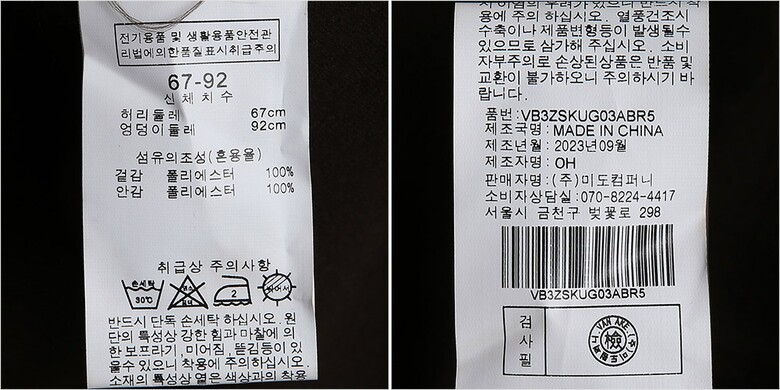 | 6. 세탁방법 및 취급시 주의사항 | 상세페이지 참조 |
