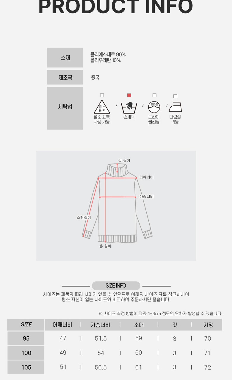 | 6. 세탁방법 및 취급시 주의사항 | 단독손세탁, 드라이크리닝 |