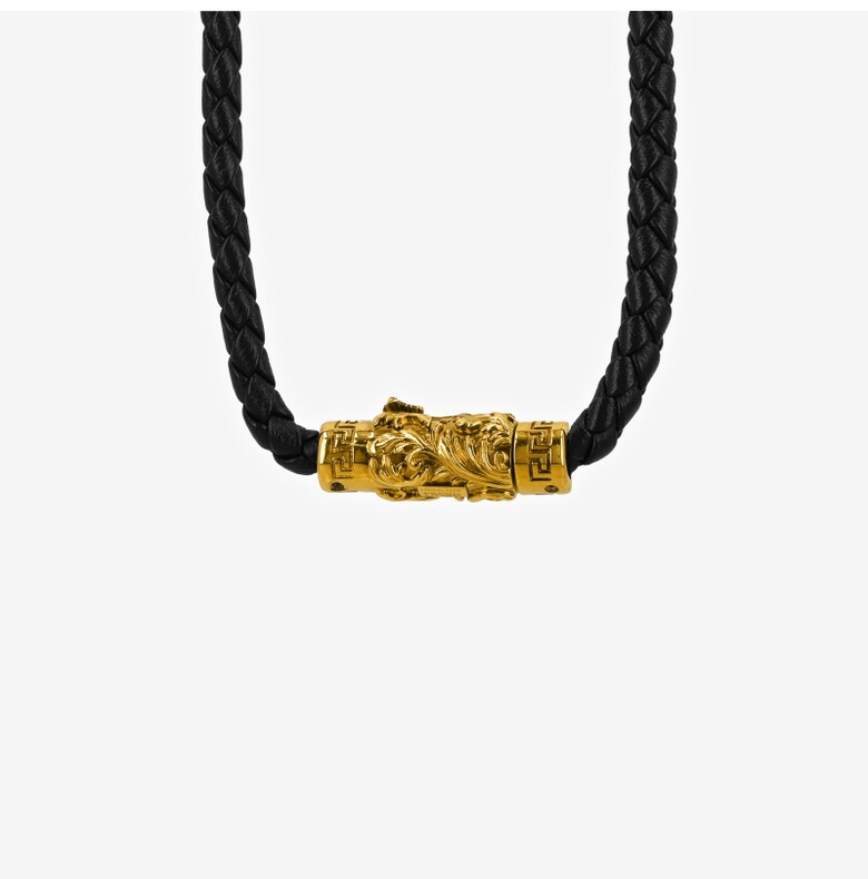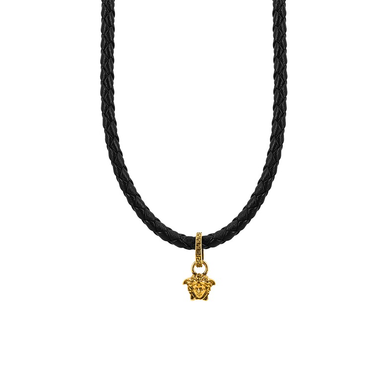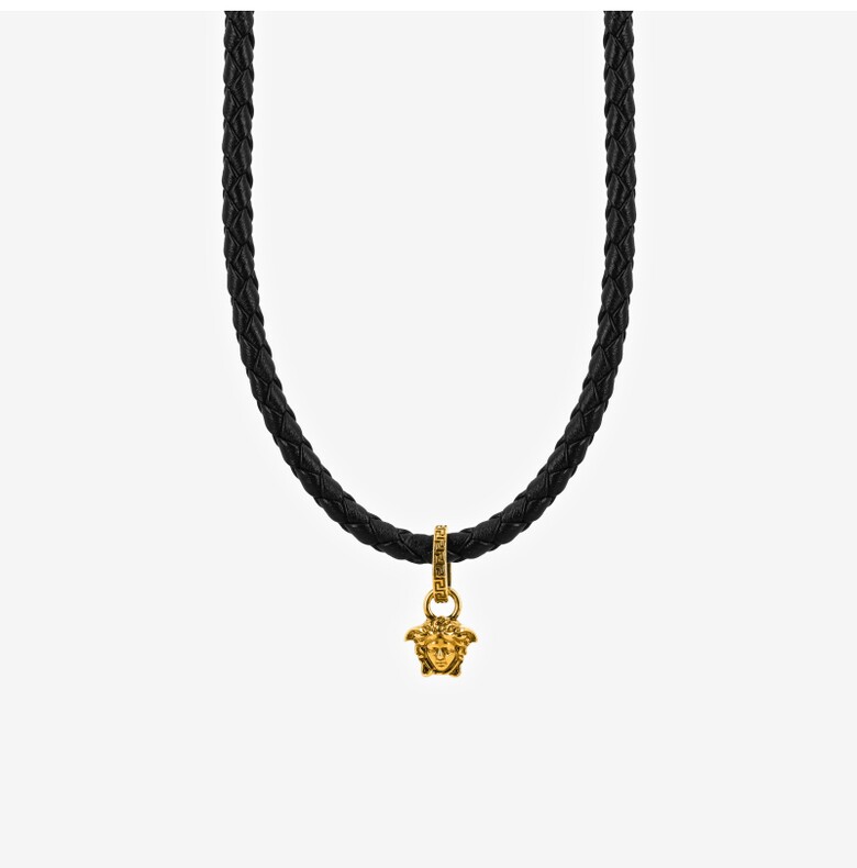 베르사체 1021598 1A00637 1B460 메두사 참 브레이드 가죽 목걸이