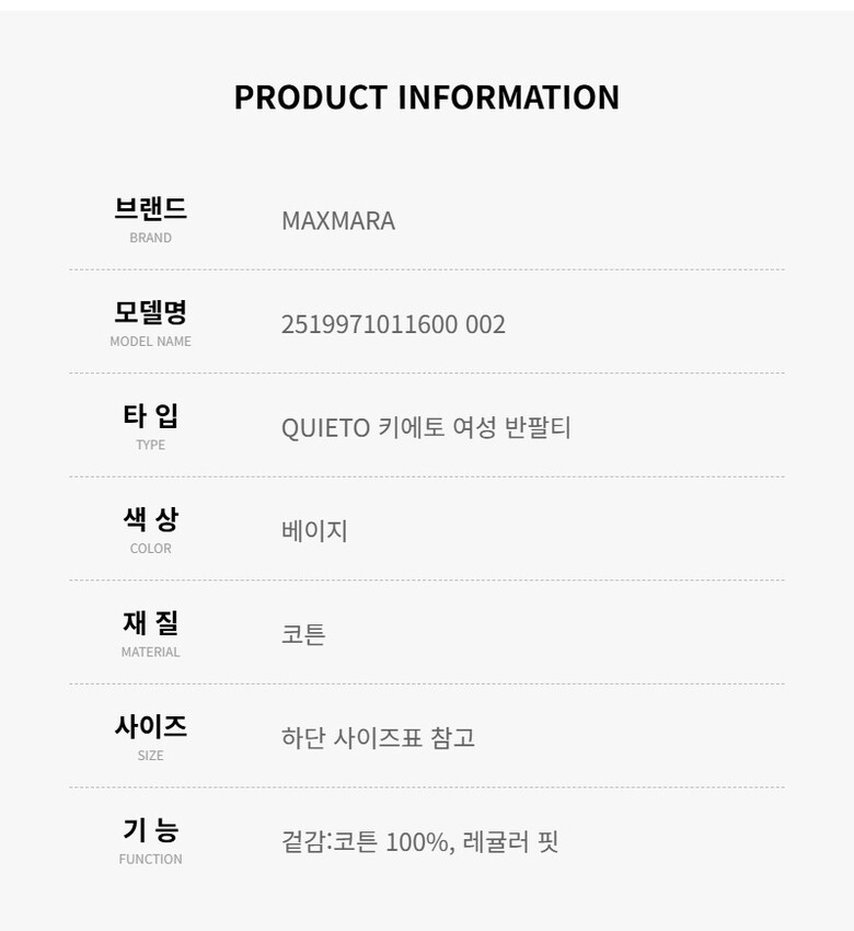 막스마라 2519971011600 002 QUIETO 키에토 여성 반팔티
