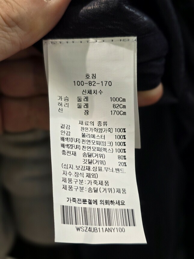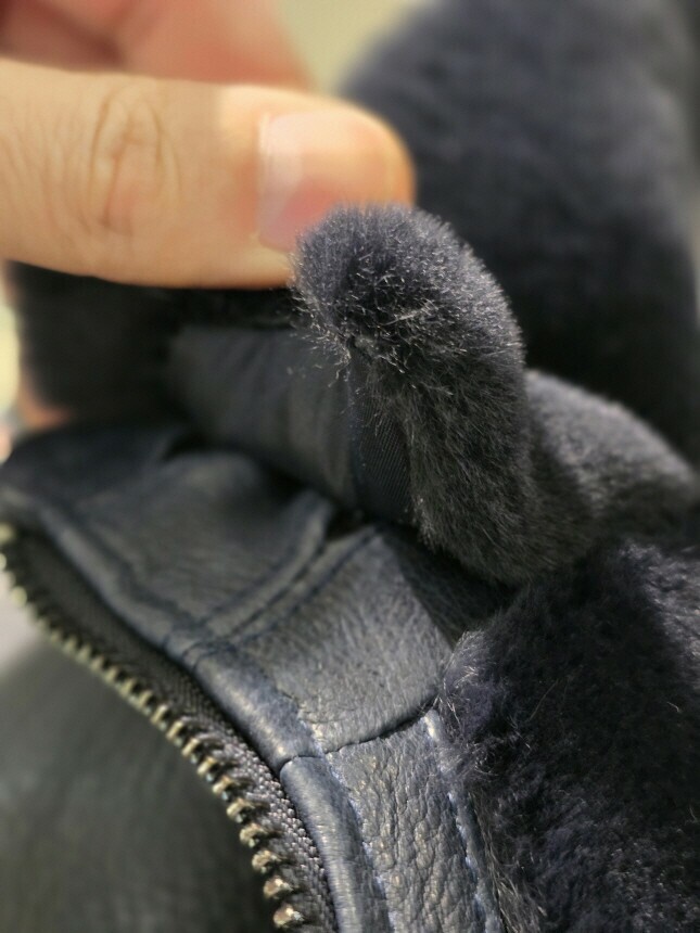 1. 제품 소재 (섬유의 조성 또는 혼용률을 백분율로 표시, 기능성인 경우 성적서 또는 허가서) 겉감 : 천연가죽(양가죽) 100% 안감 : 폴리에스테르 100% 배색1(FUR)