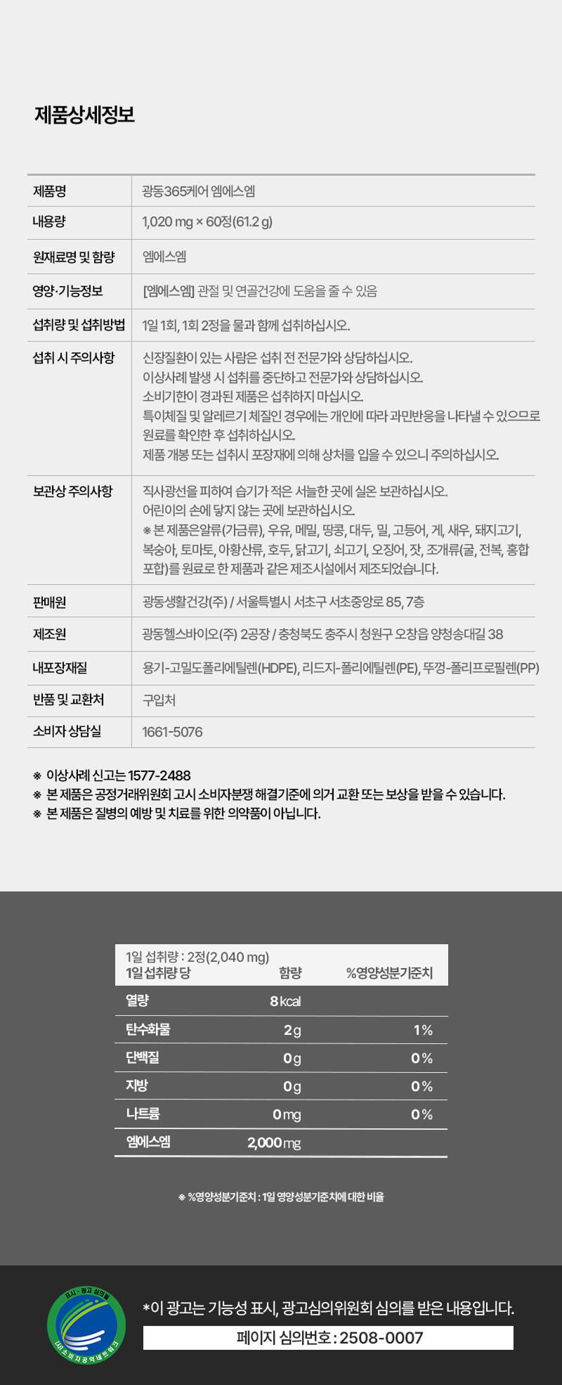 | 1. 제품명 | 광동365케어 엠에스엠 |