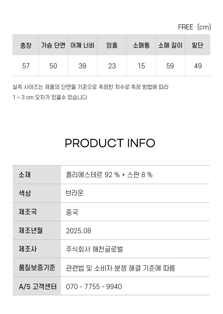 | 1. 제품 소재 (섬유의 조성 또는 혼용률을 백분율로 표시, 기능성인 경우 성적서 또는 허가서) | 상품 상세페이지 참조 |
