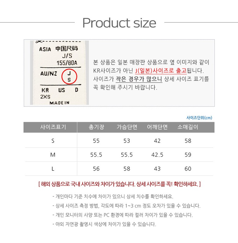 • 아울렛 상품의 특성 상 “택이 훼손”된 경우가 있으나 이는 불량이 아니며 무료 반품 대상 상품이 아닙니다.