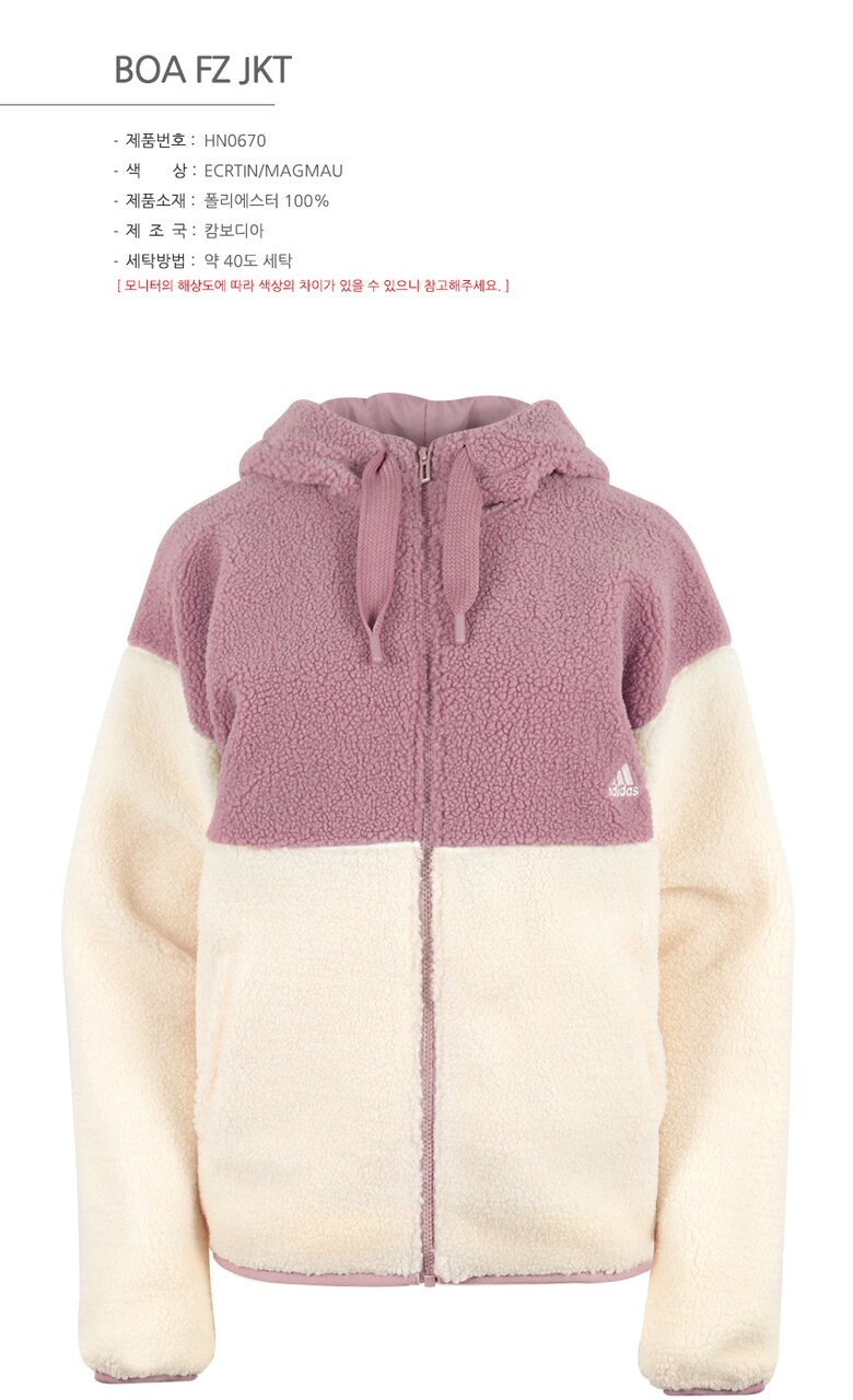아디다스 여성 오버핏 보아 풀집 플리스 자켓 HN0670