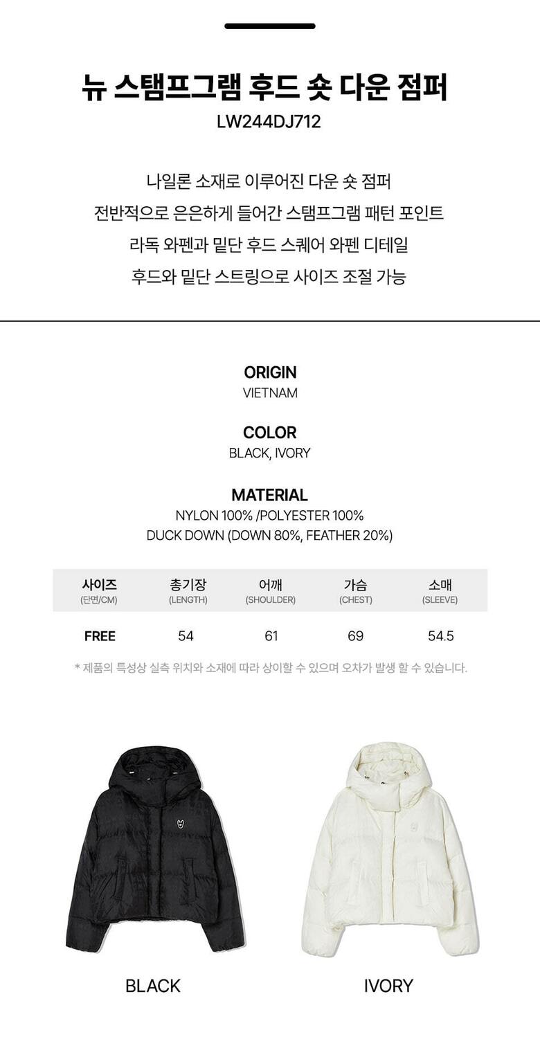 [라이프워크] 여성) 뉴 스탬프그램 후드 숏 다운 점퍼 (LW244DJ712-40)