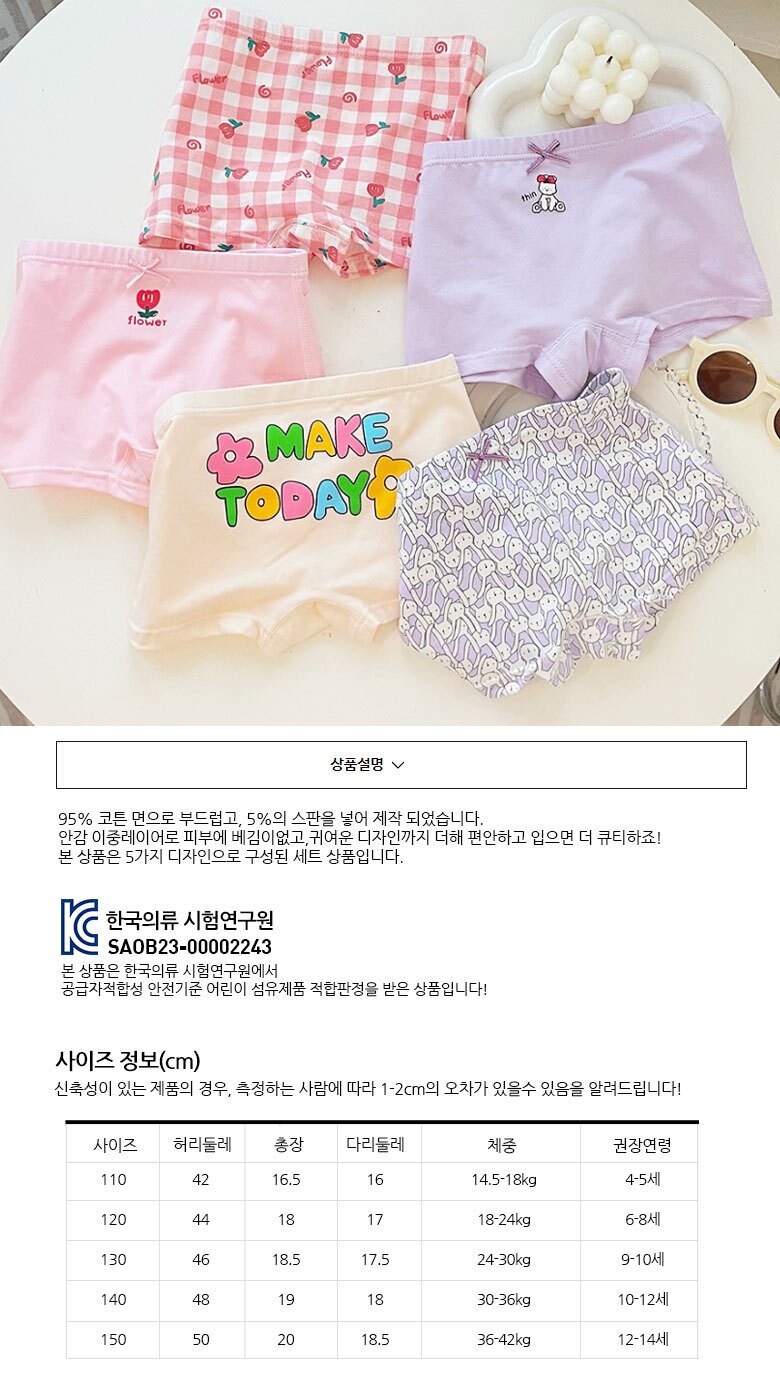 MIMO 여아/주니어 코튼 사각팬티 5매세트(363)