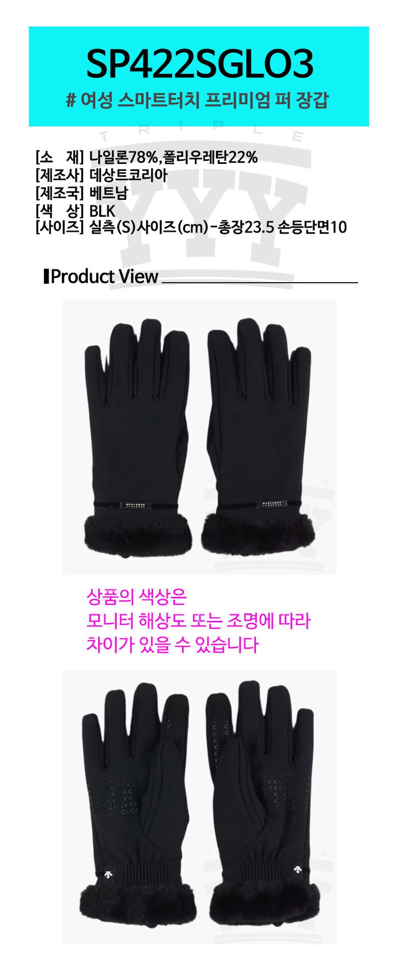 데상트 여성 스마트터치 프리미엄 퍼 장갑 SP422SGLO3 BLK