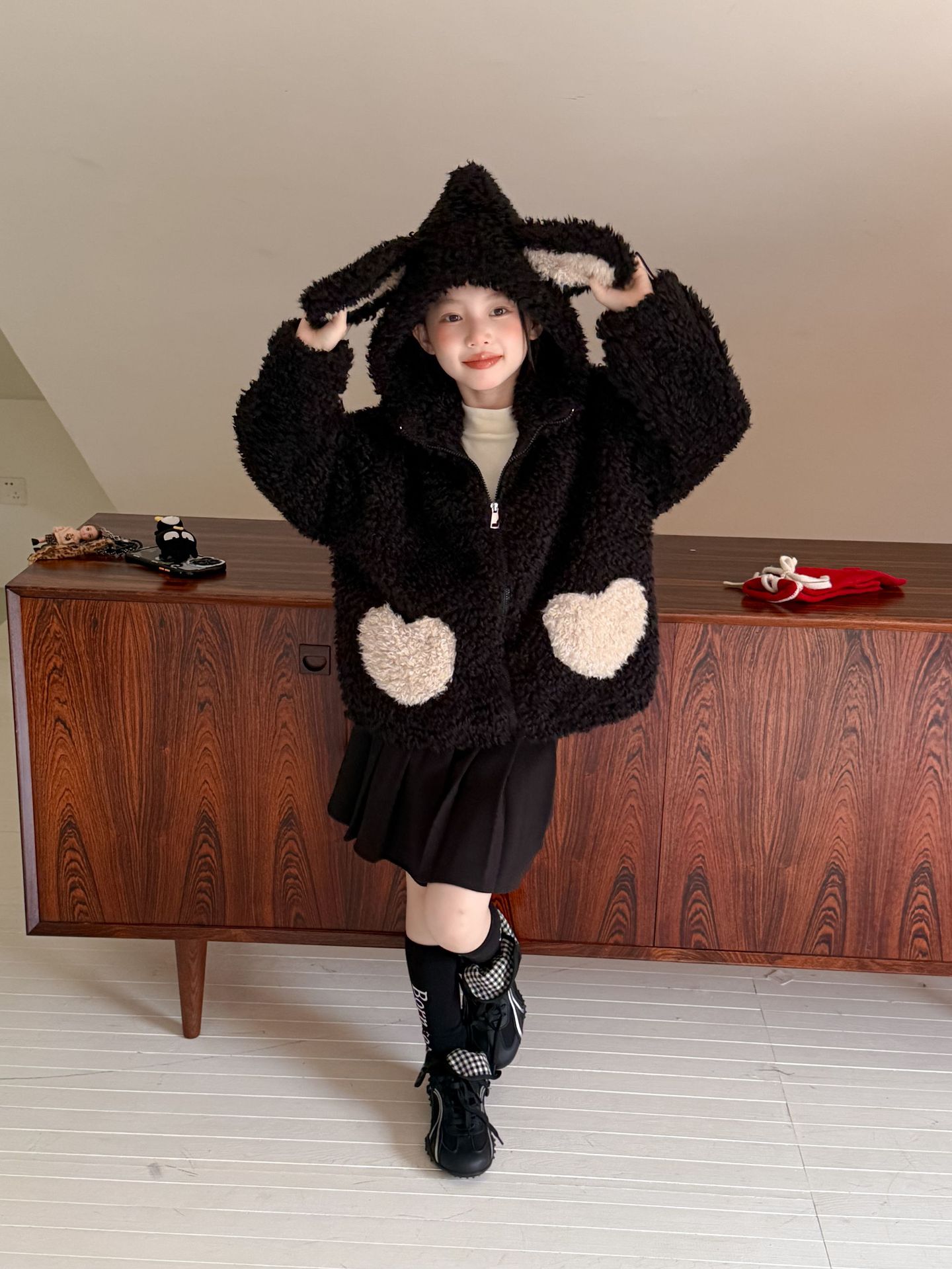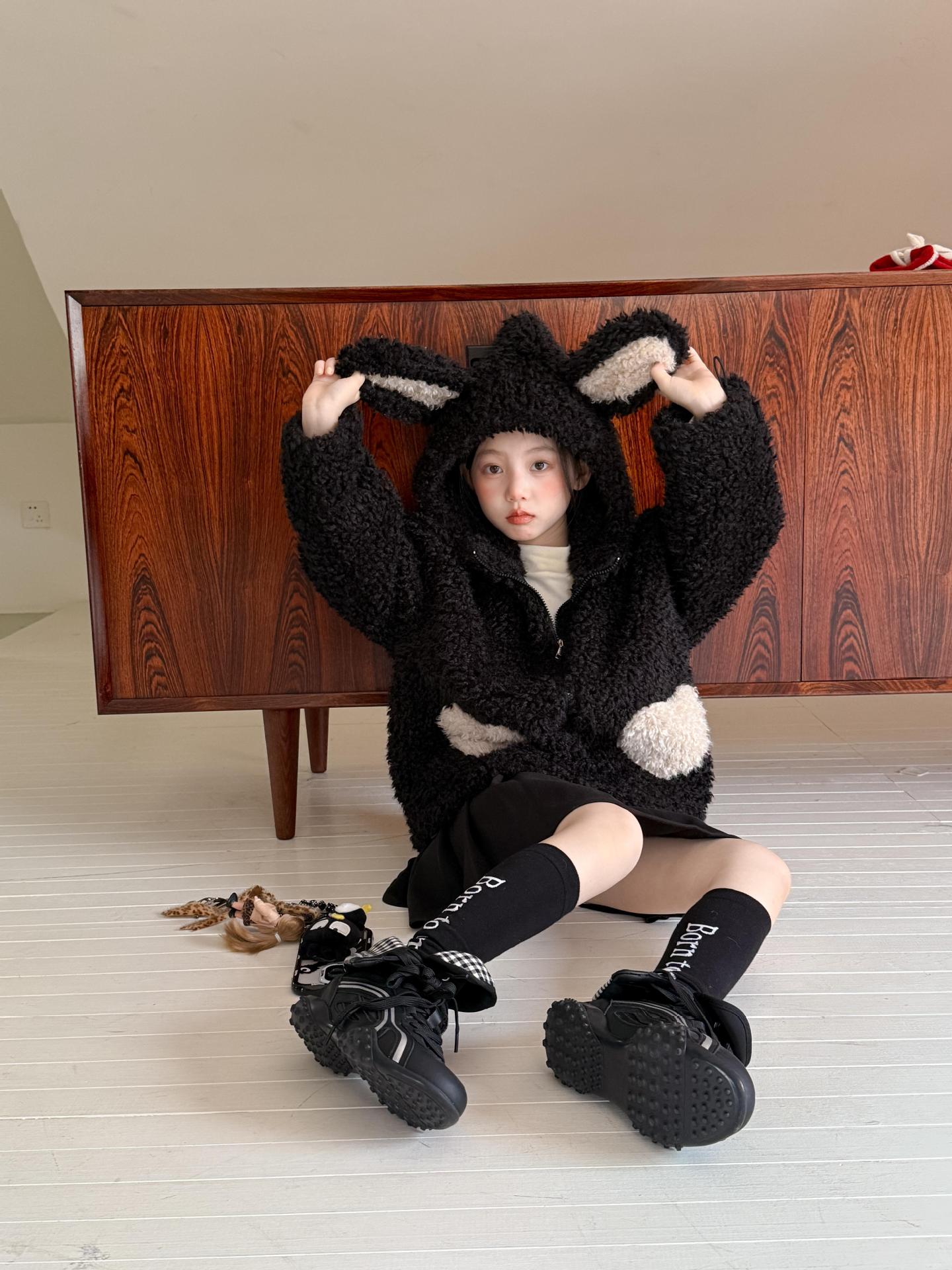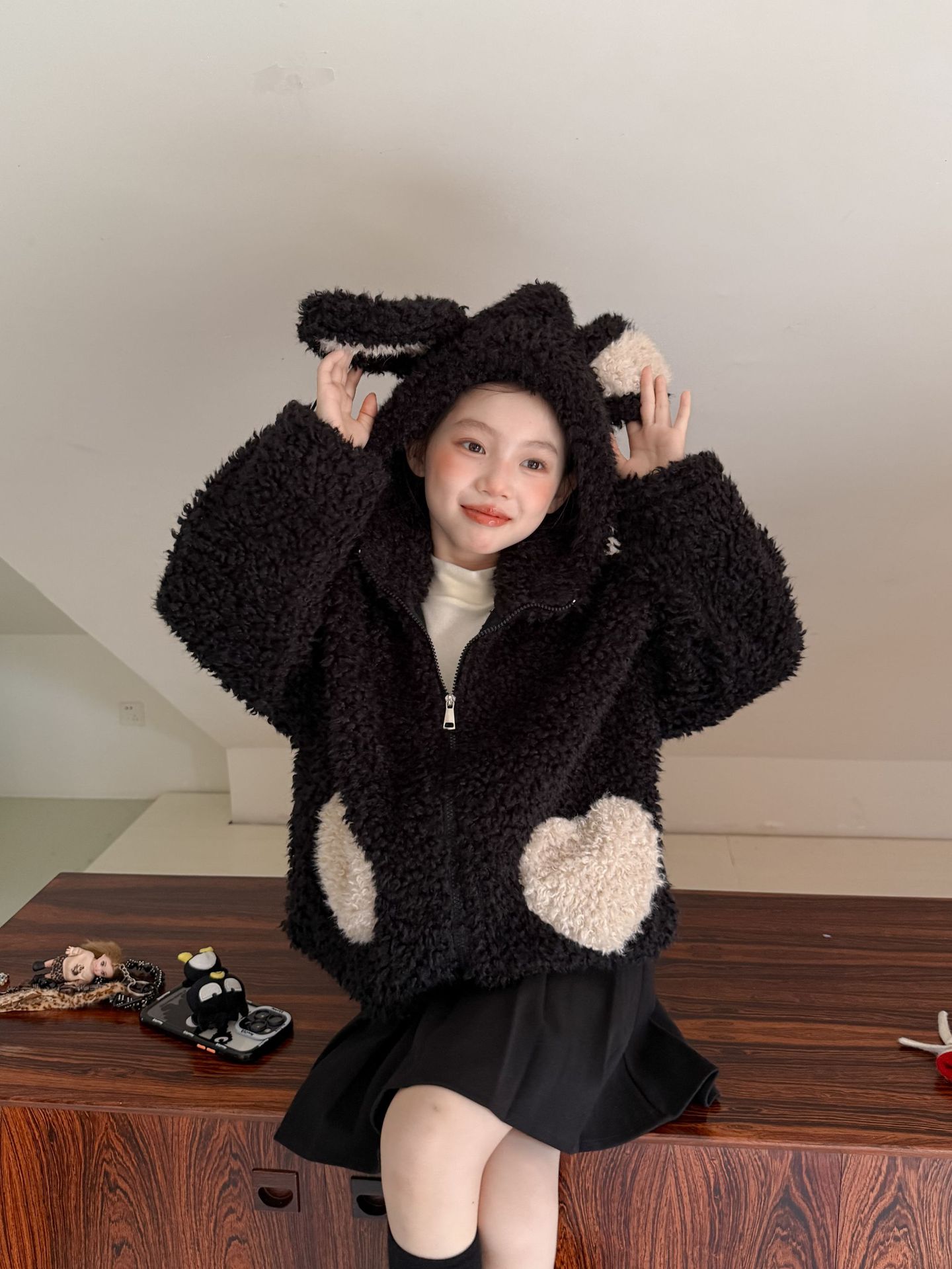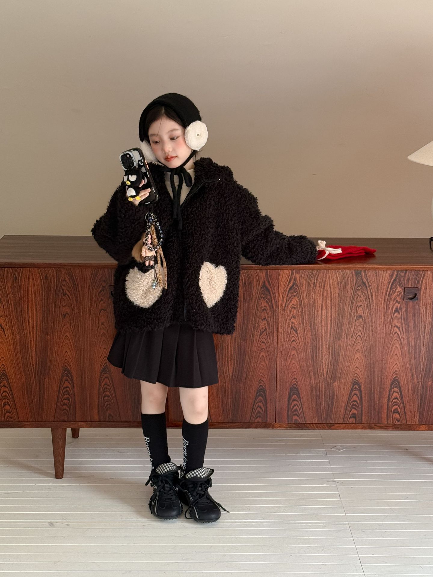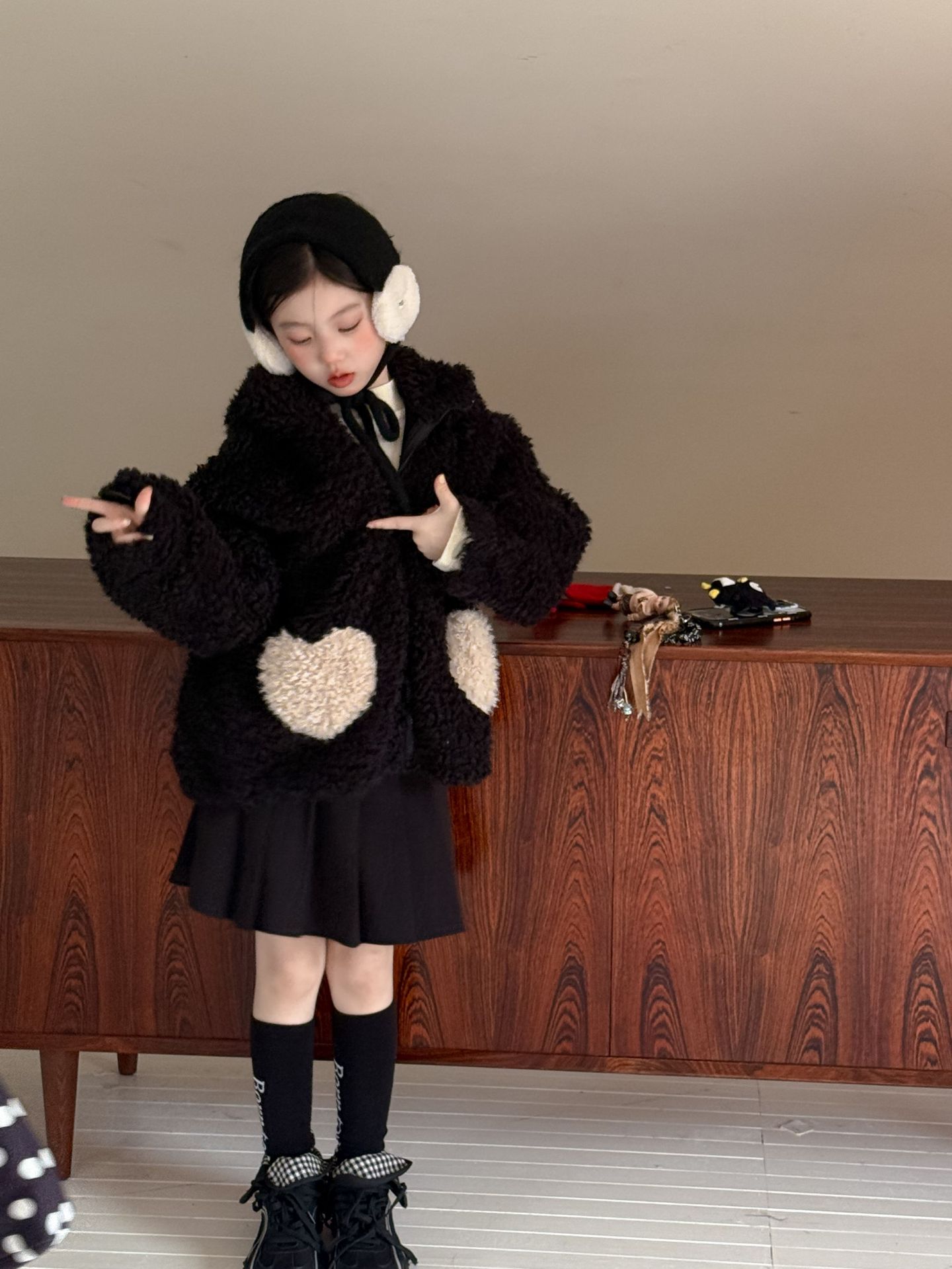 [예약발송] 배색 하트 뽀글이 후드 점퍼 R15659