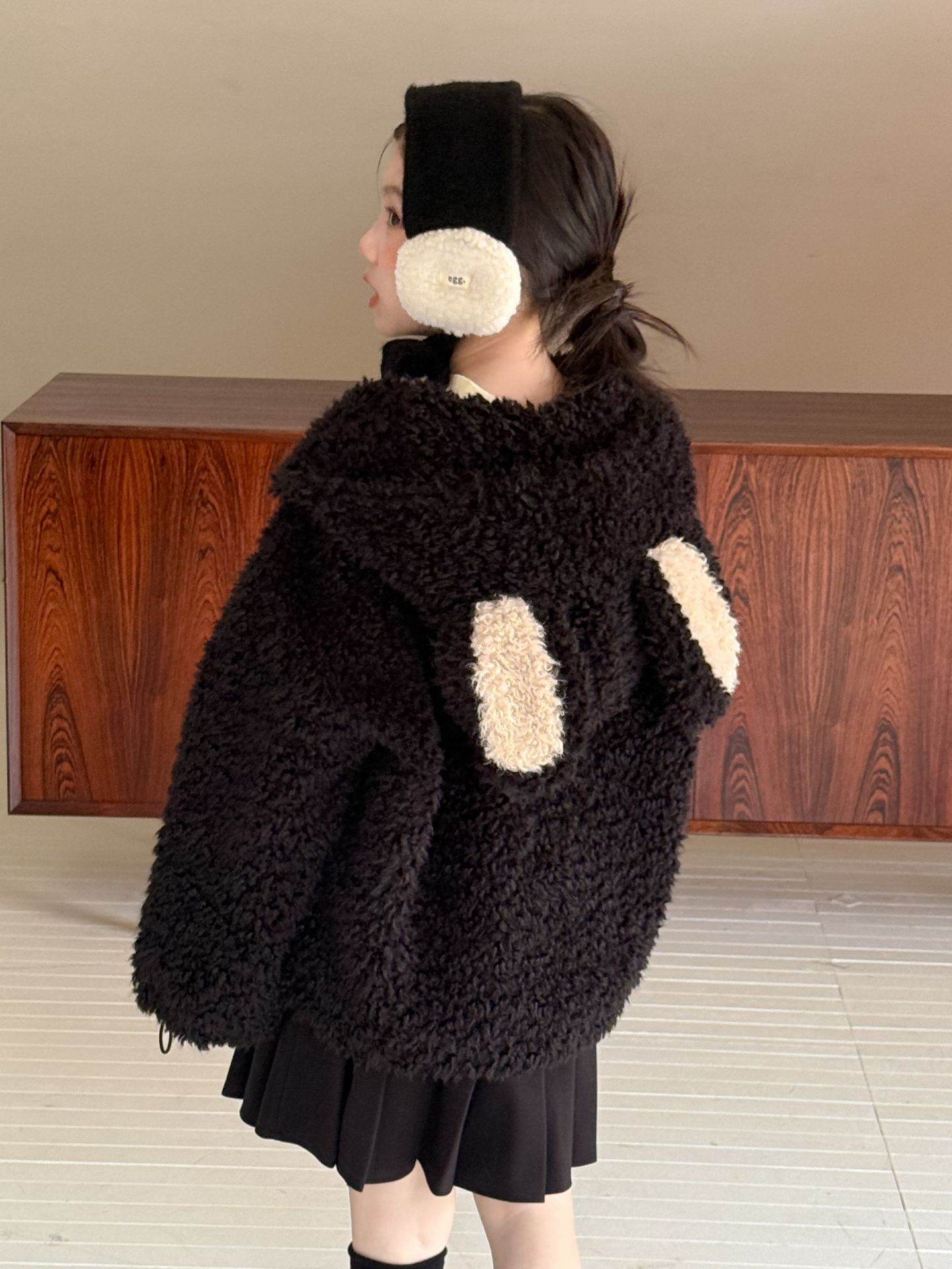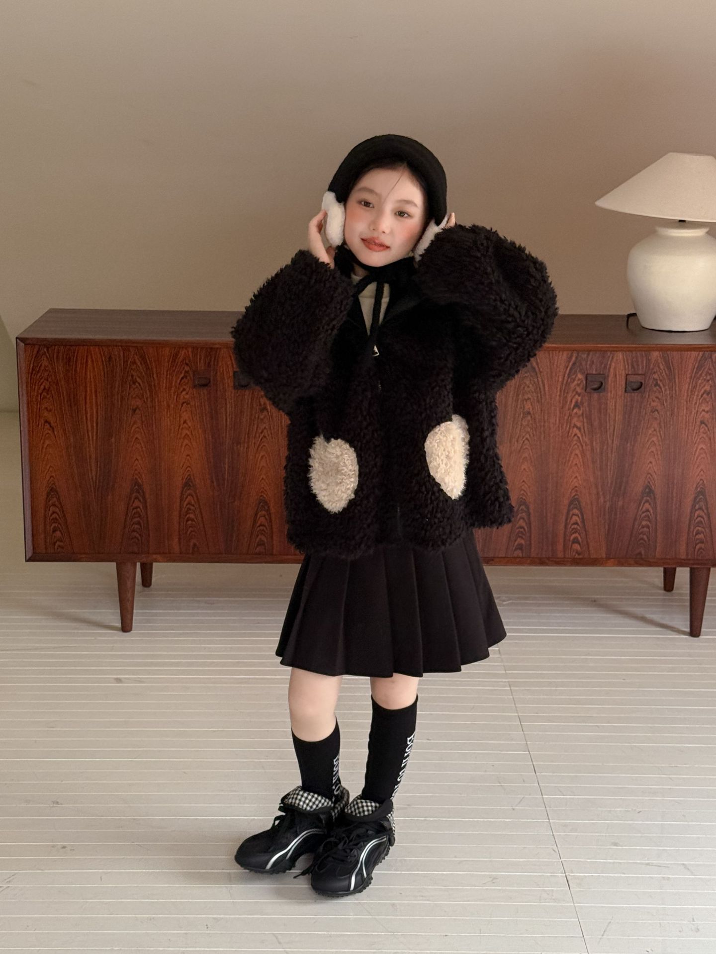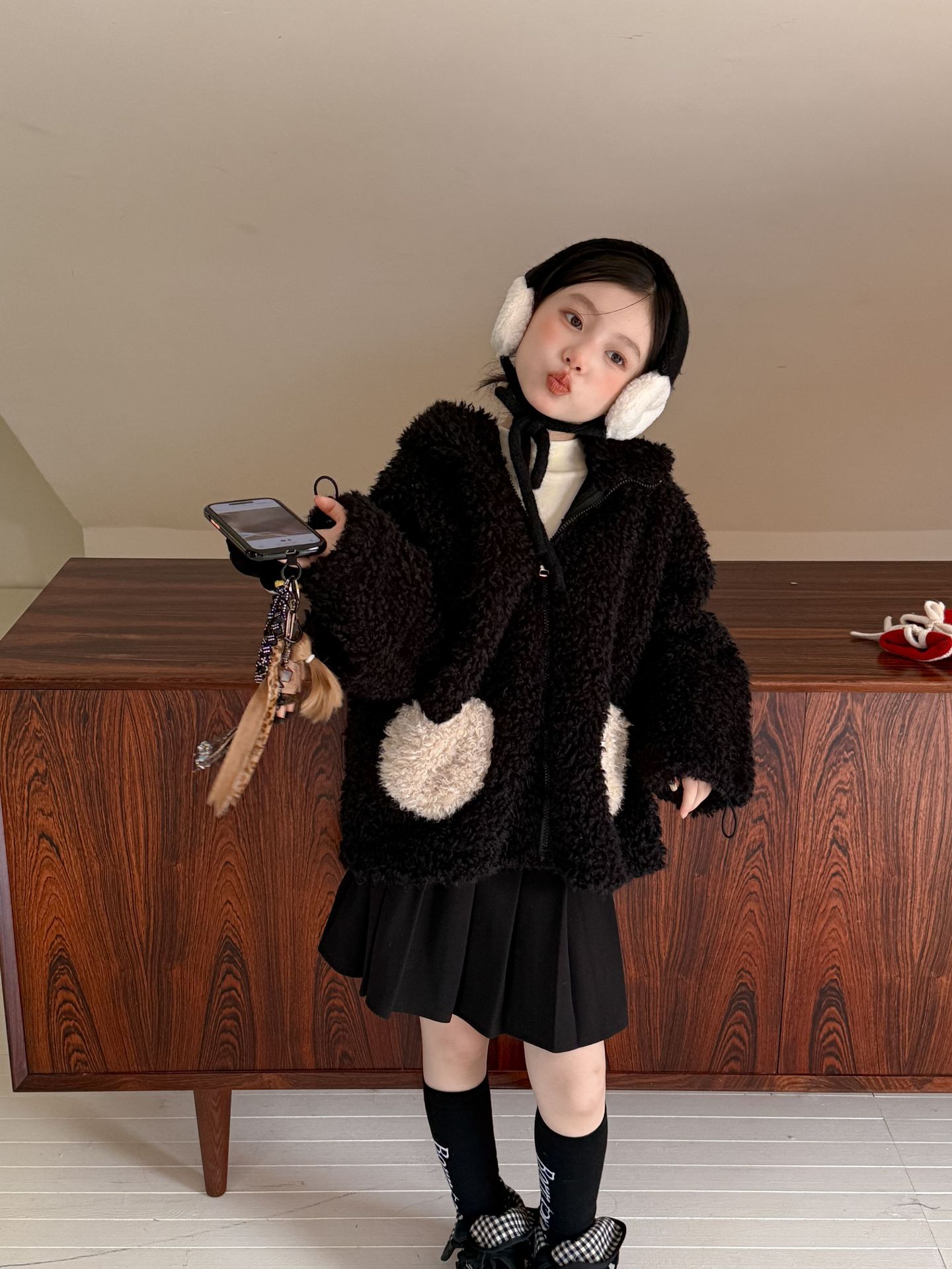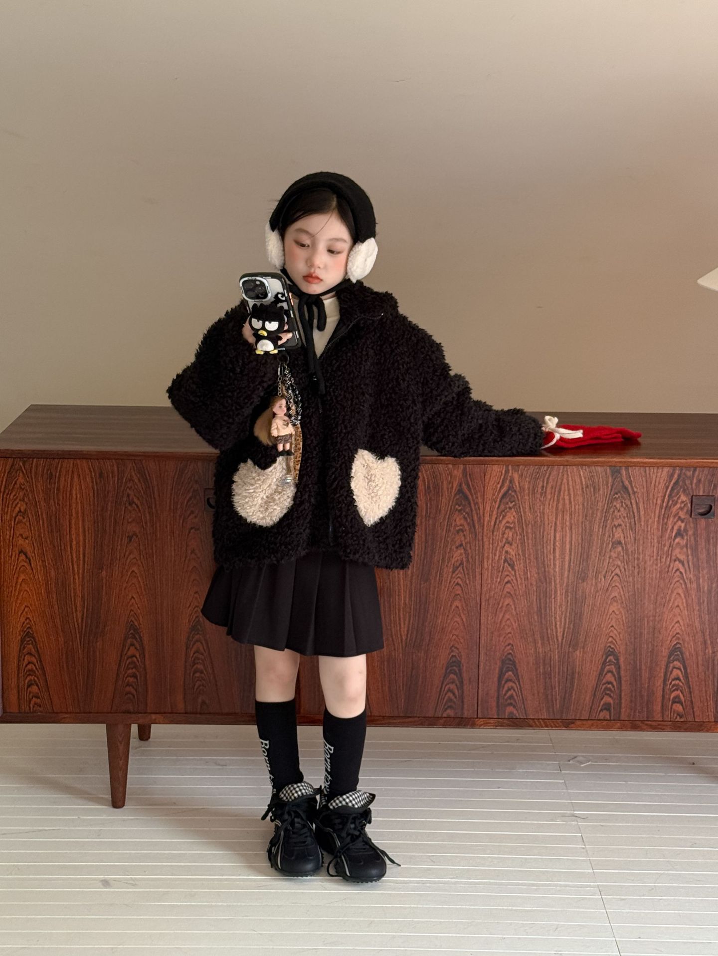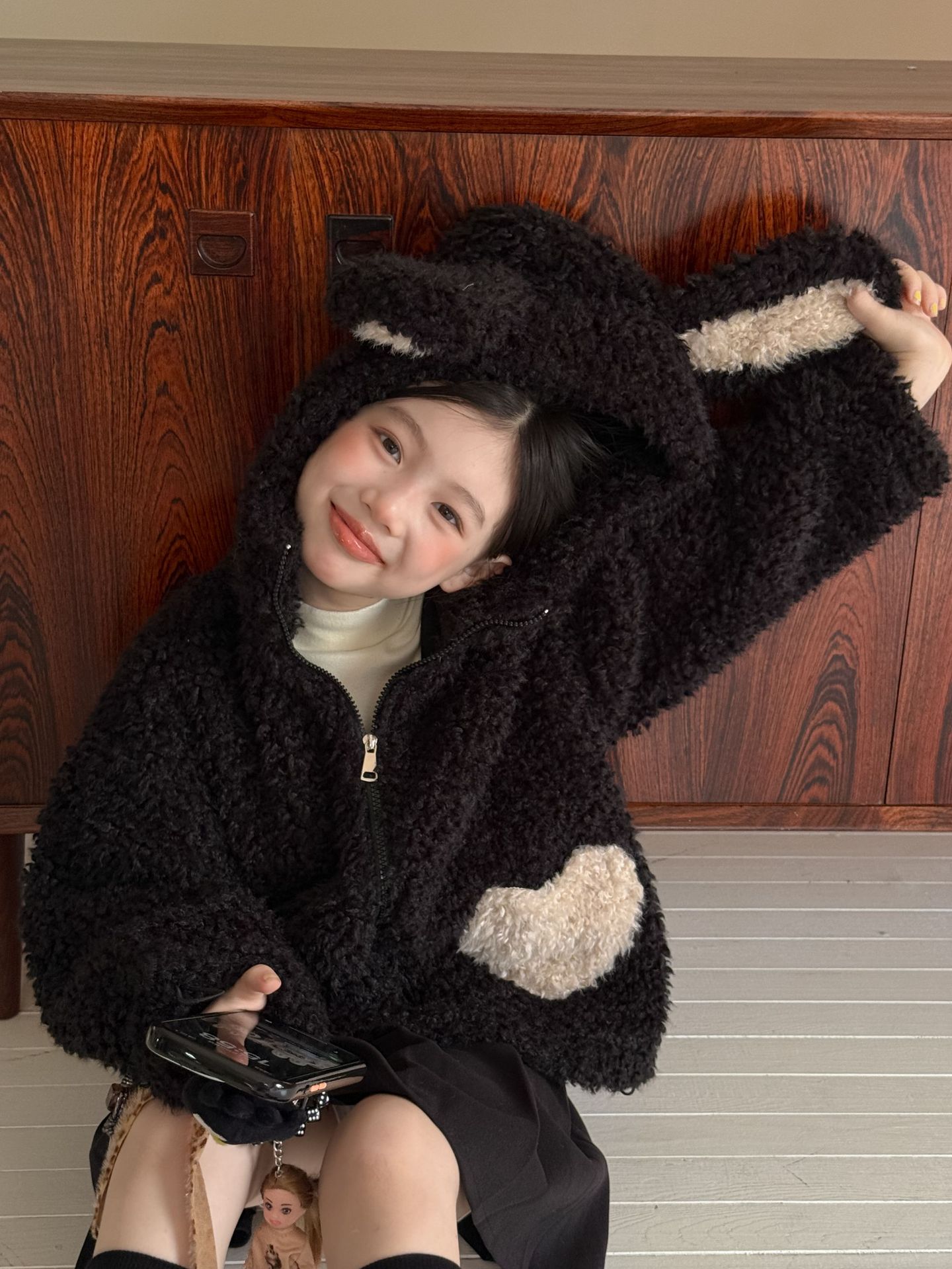[예약발송] 배색 하트 뽀글이 후드 점퍼 R15659