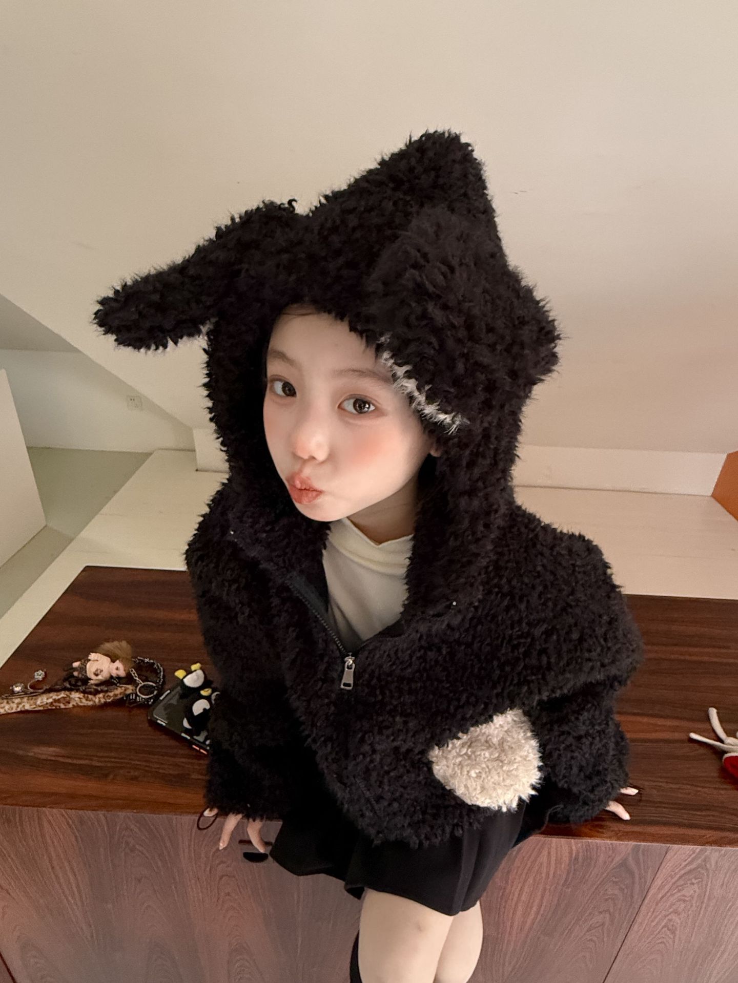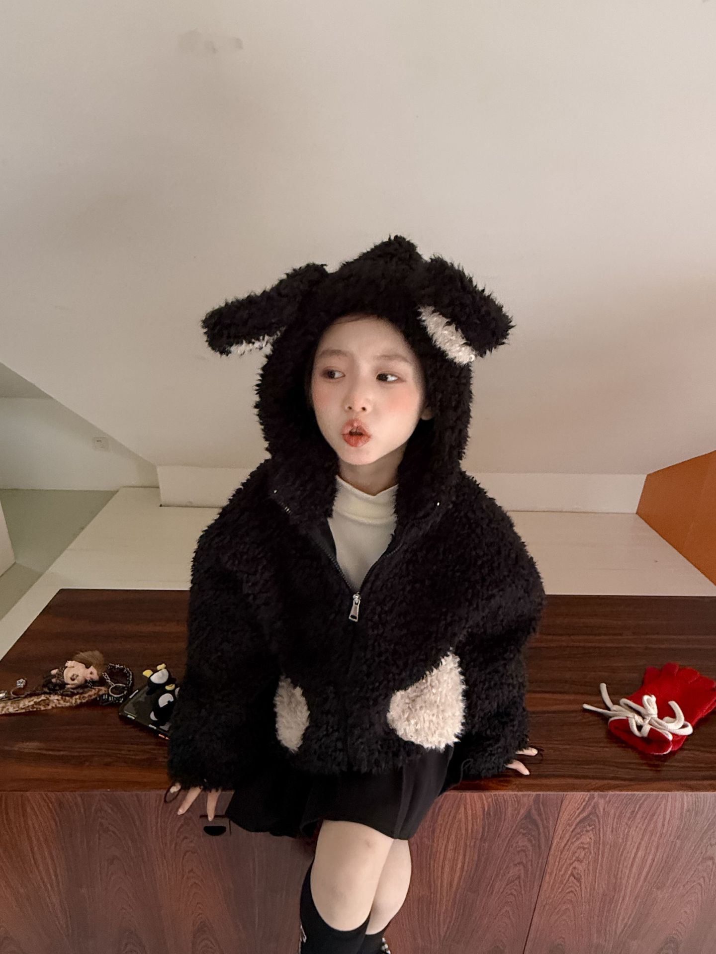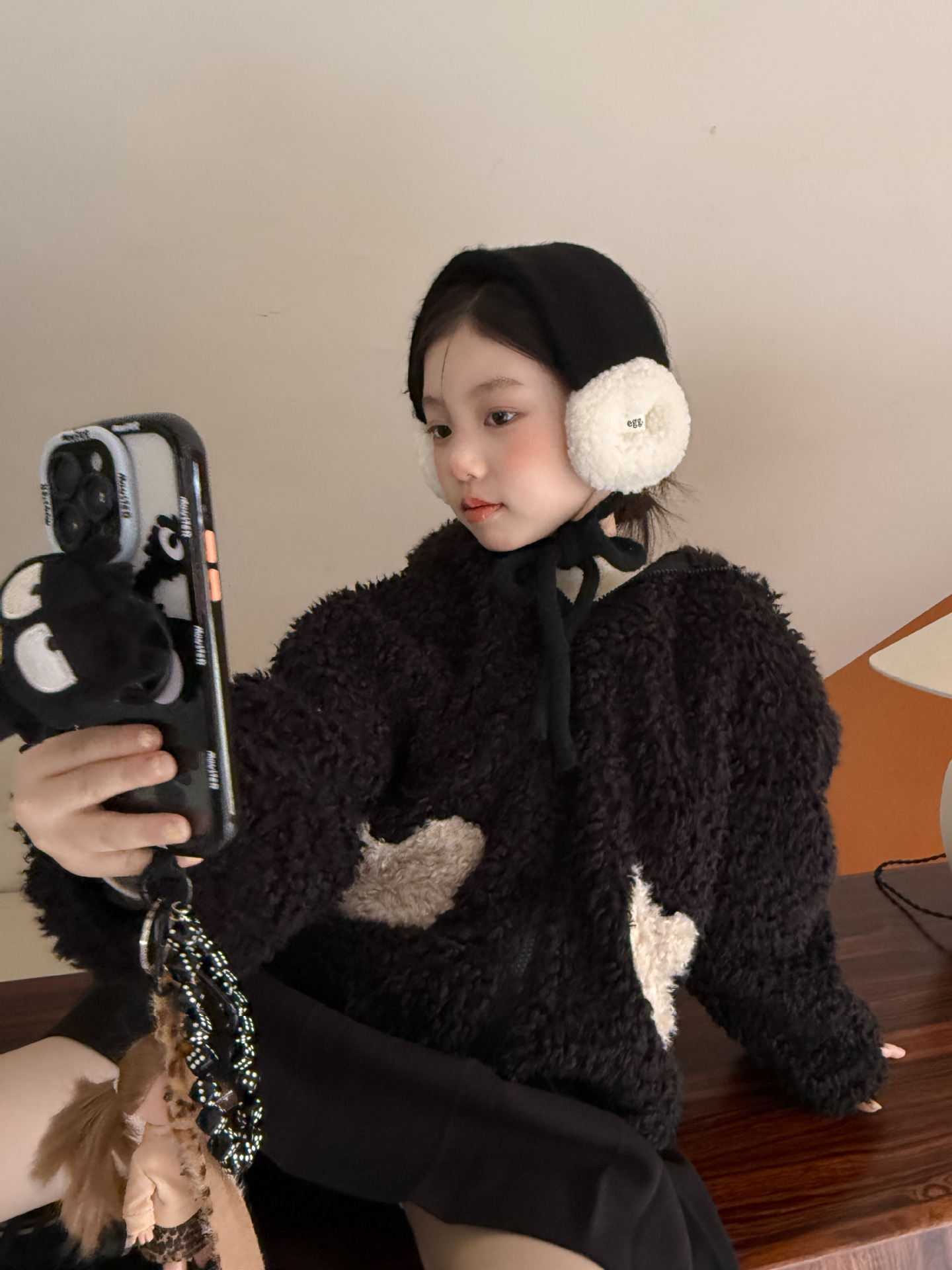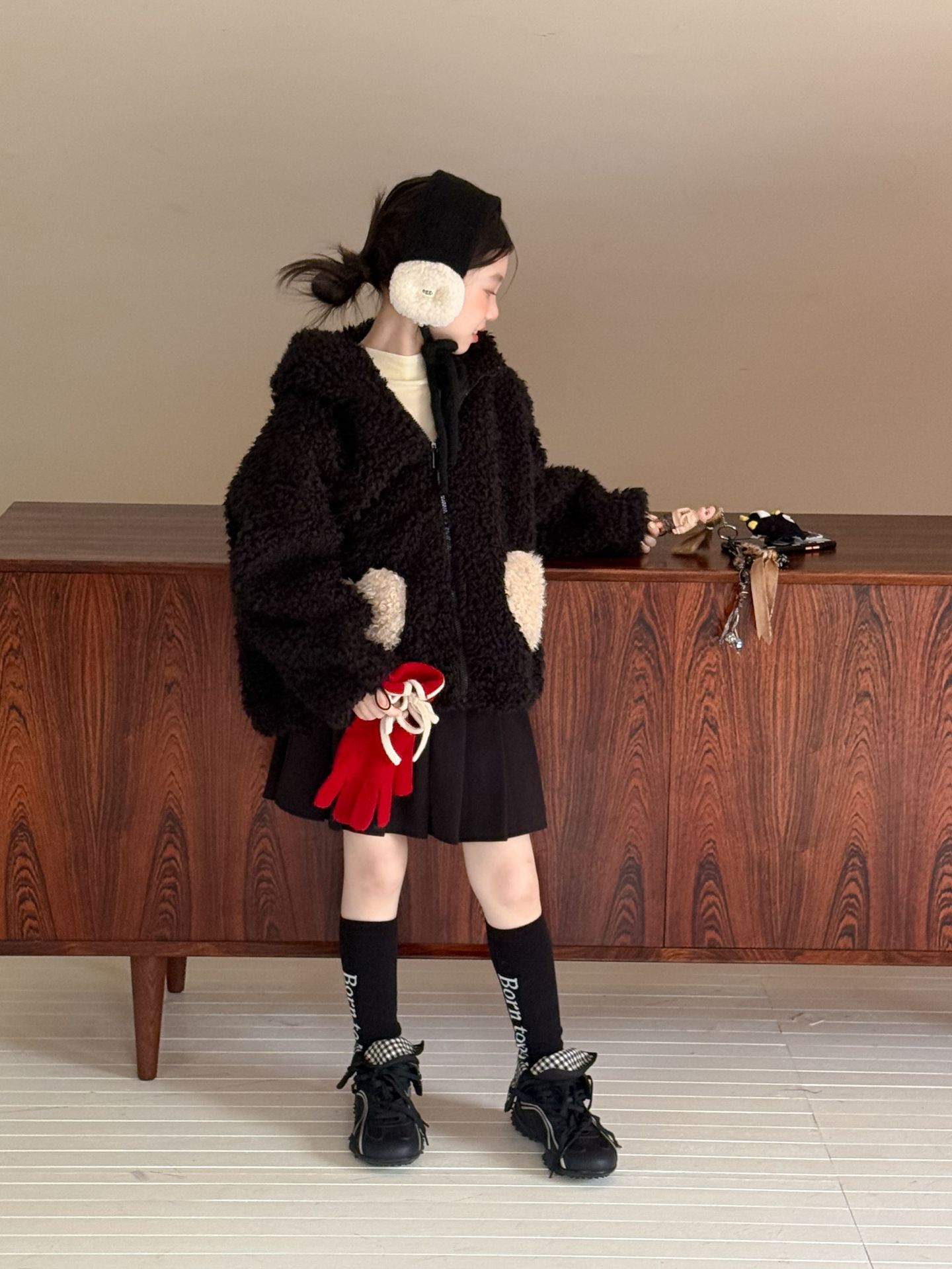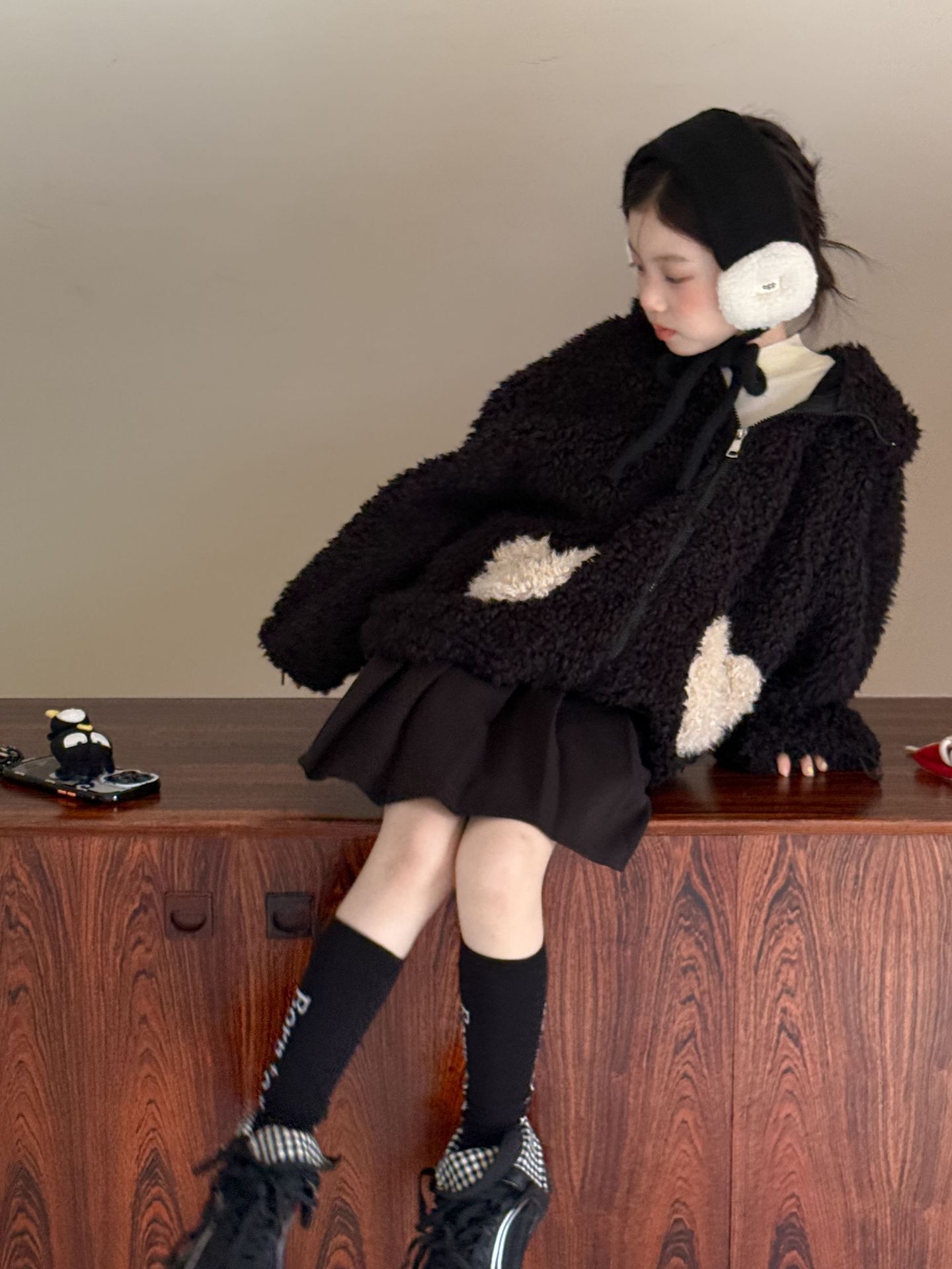 [예약발송] 배색 하트 뽀글이 후드 점퍼 R15659