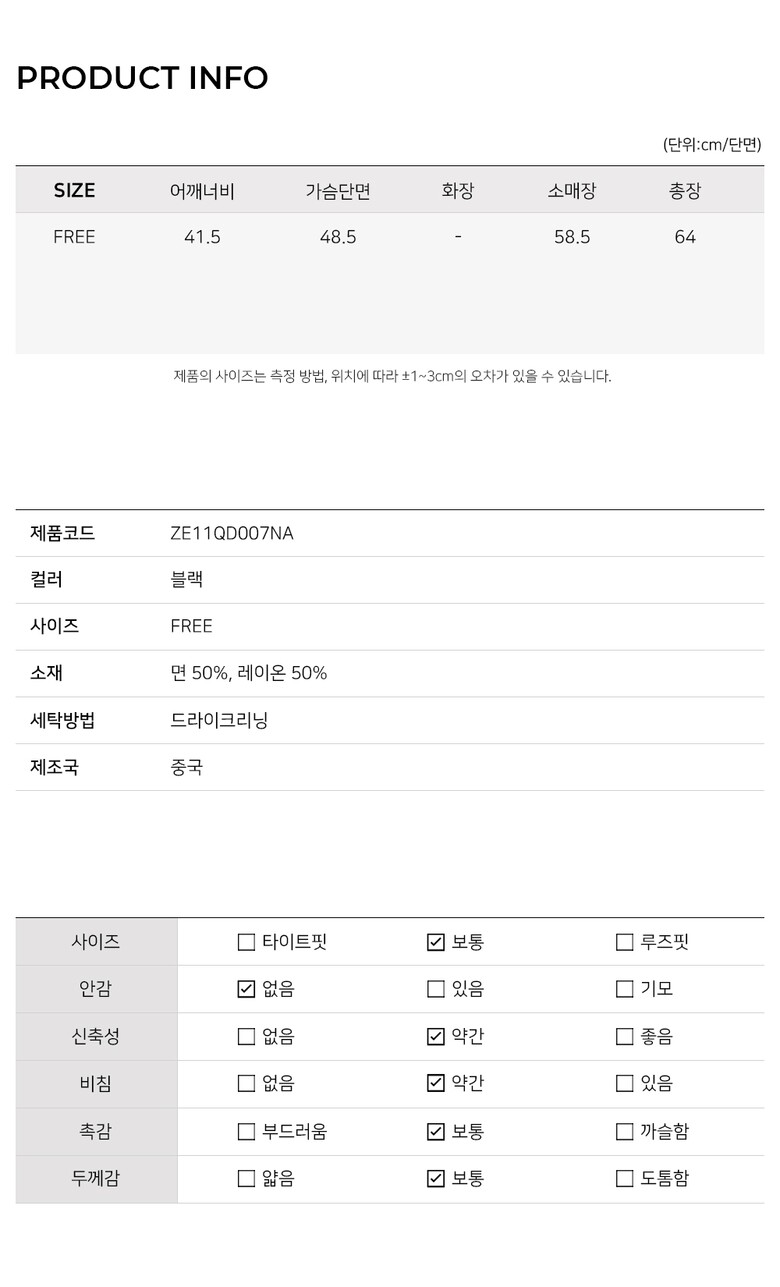 • 처음 배송된 상품상태와 다를 경우(세탁/착용 후 외출하신 경우) 반품이 불가합니다.
