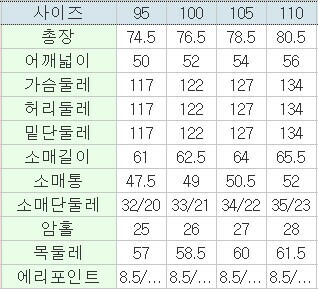 | 3. 치수 | 95,100,105,110 |