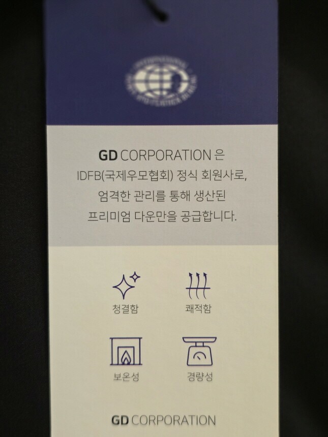 충전재 : 거위(솜털) 80% , 거위(깃털) 20%