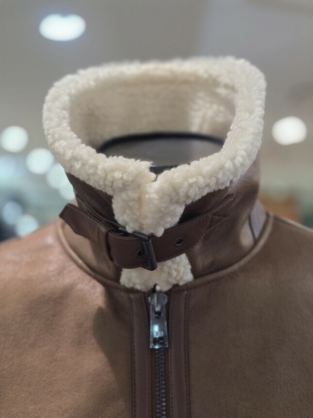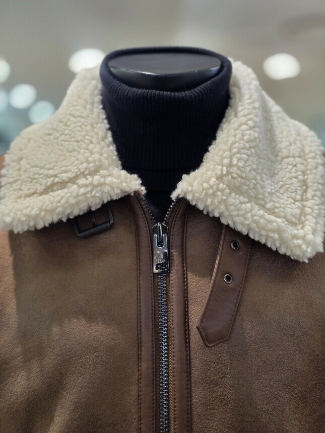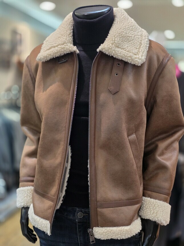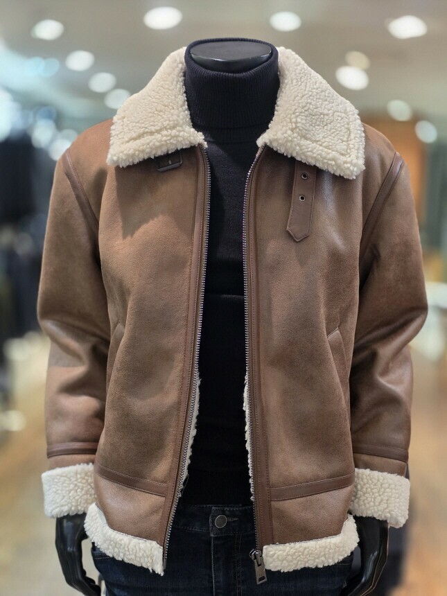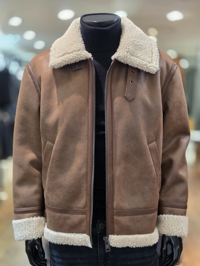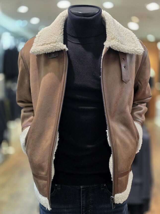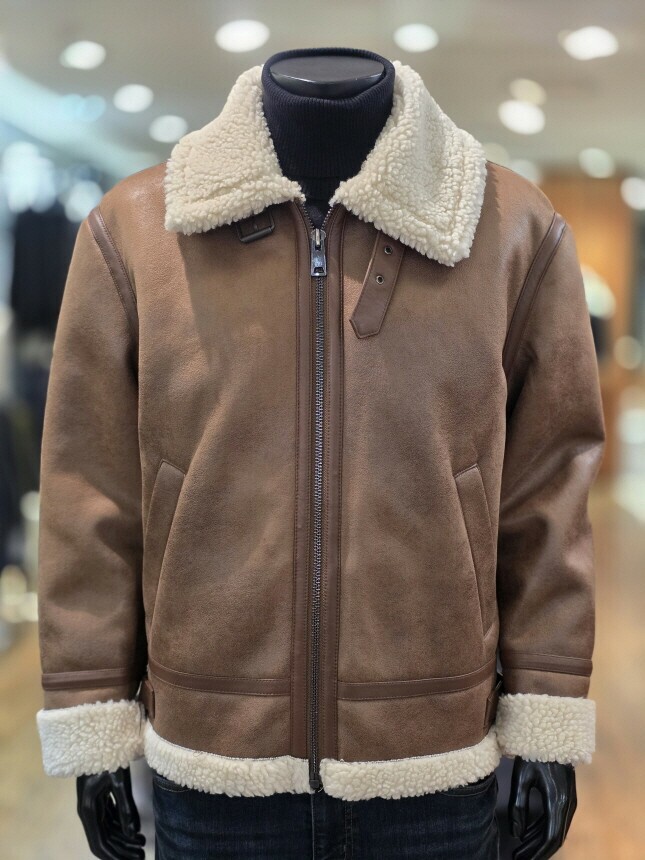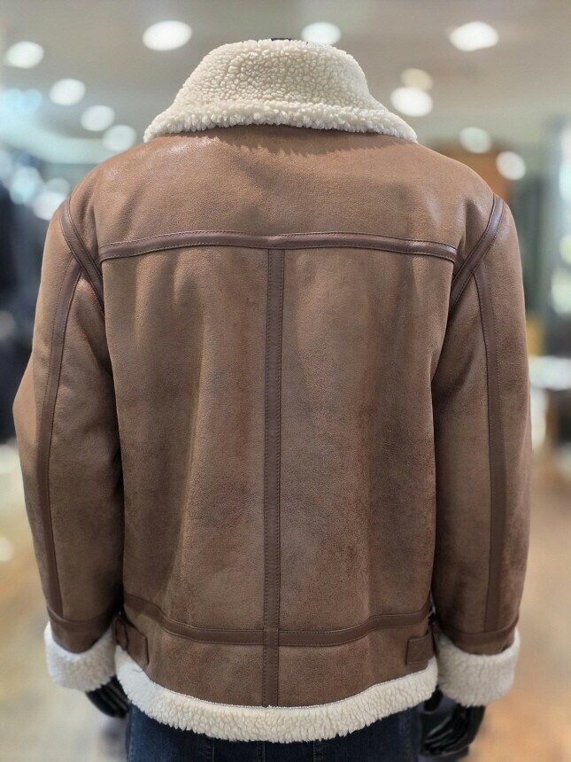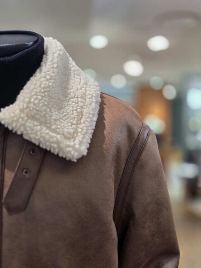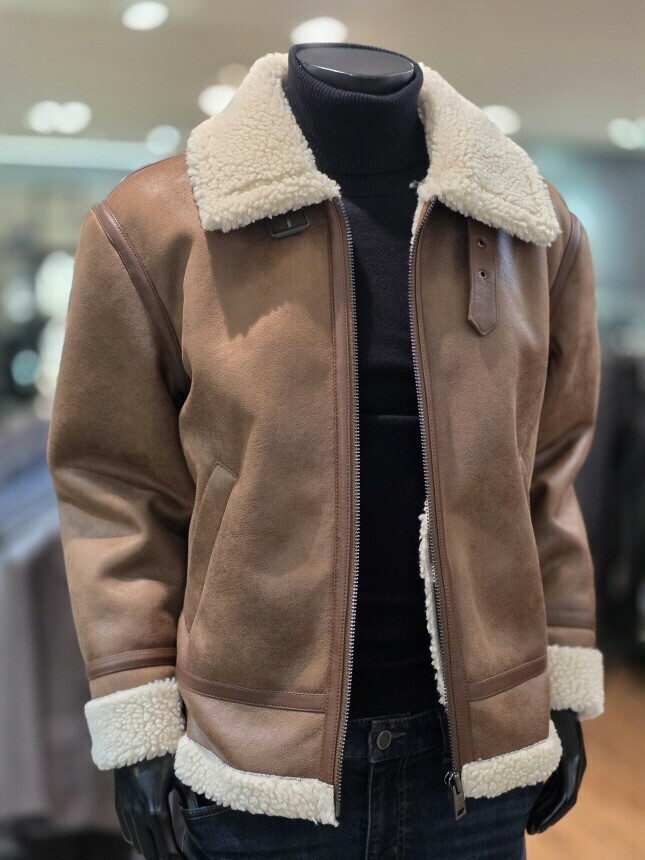 [바쏘옴므] 25년 F/W 브라운 양가죽 배색 페이크 무스탕 점퍼