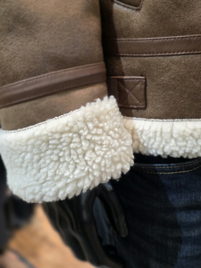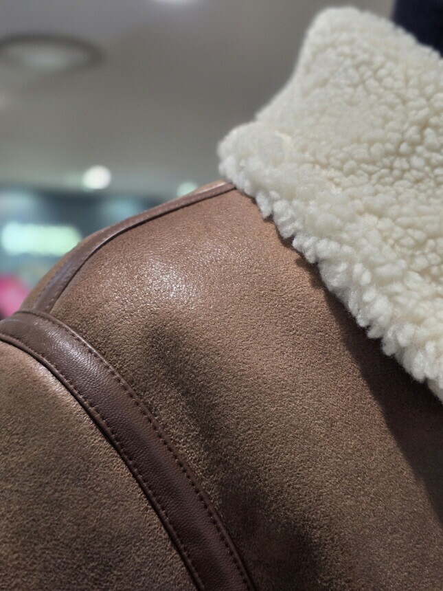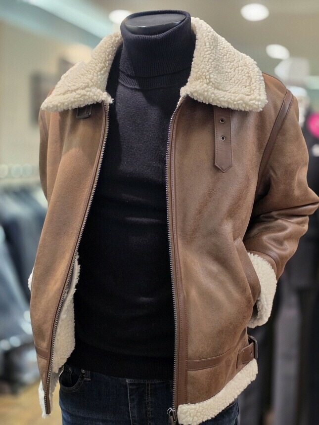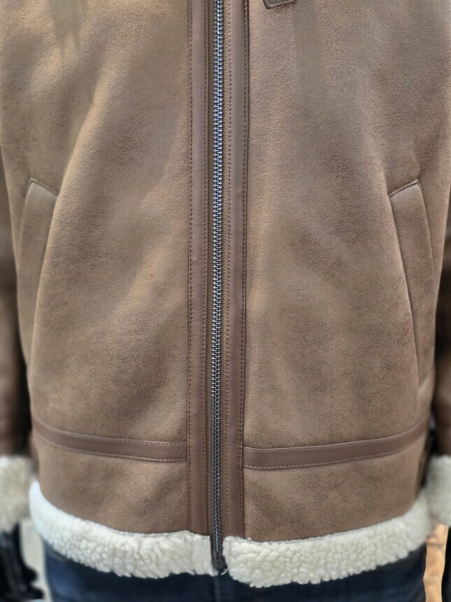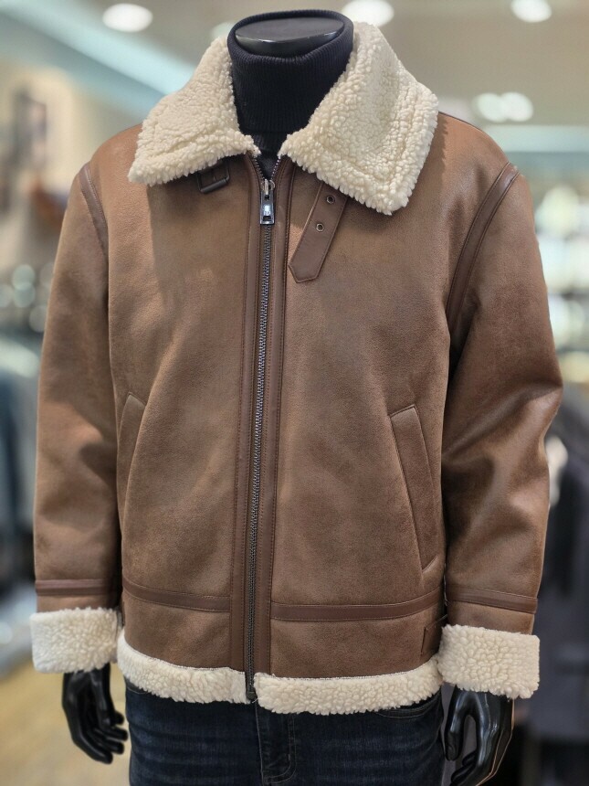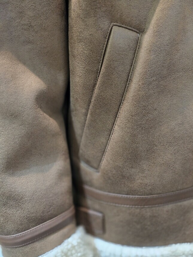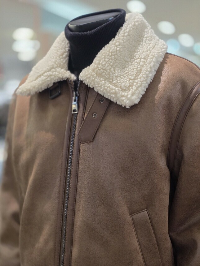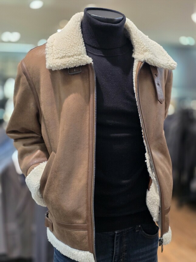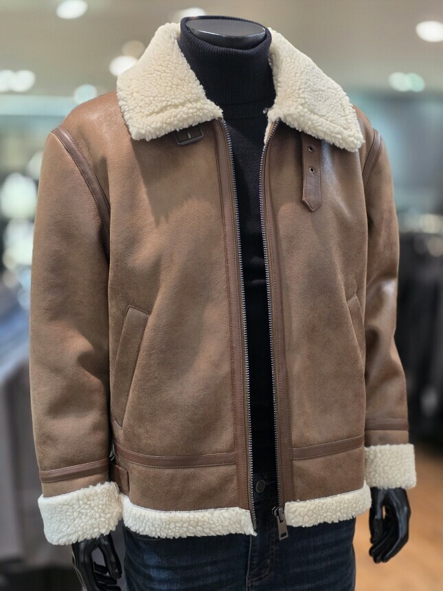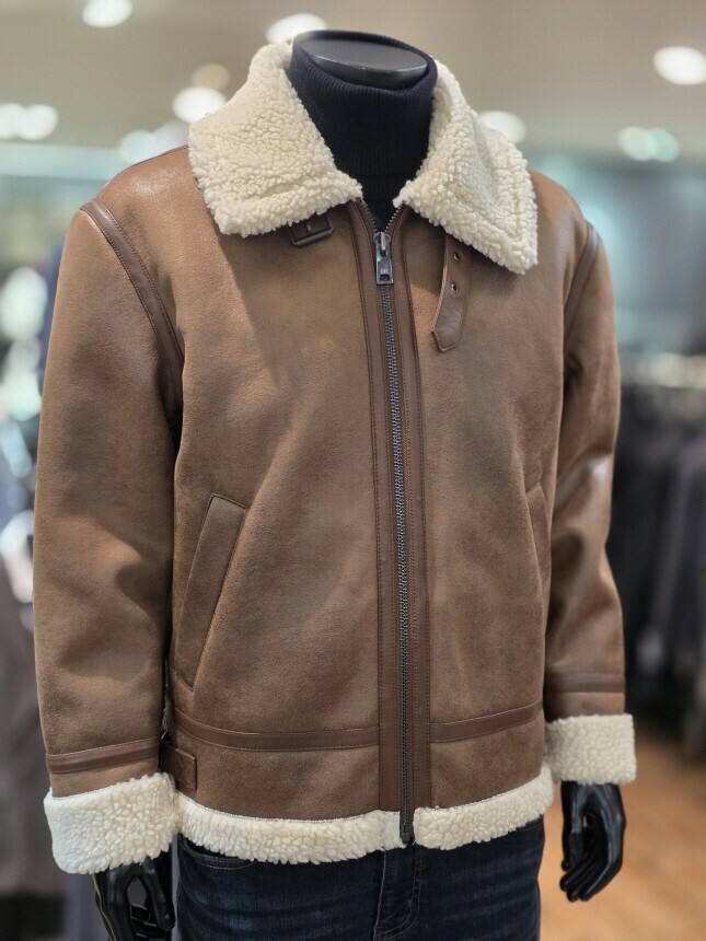 [바쏘옴므] 25년 F/W 브라운 양가죽 배색 페이크 무스탕 점퍼