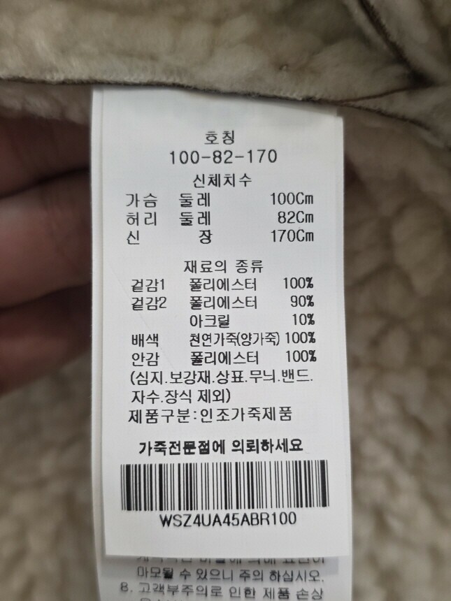 겉감2 : 폴리에스터 90% , 아크릴 10%