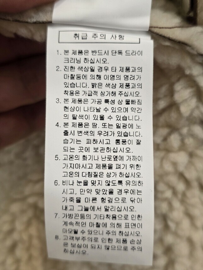 | 6. 세탁방법 및 취급시 주의사항 | 드라이크리닝 |
