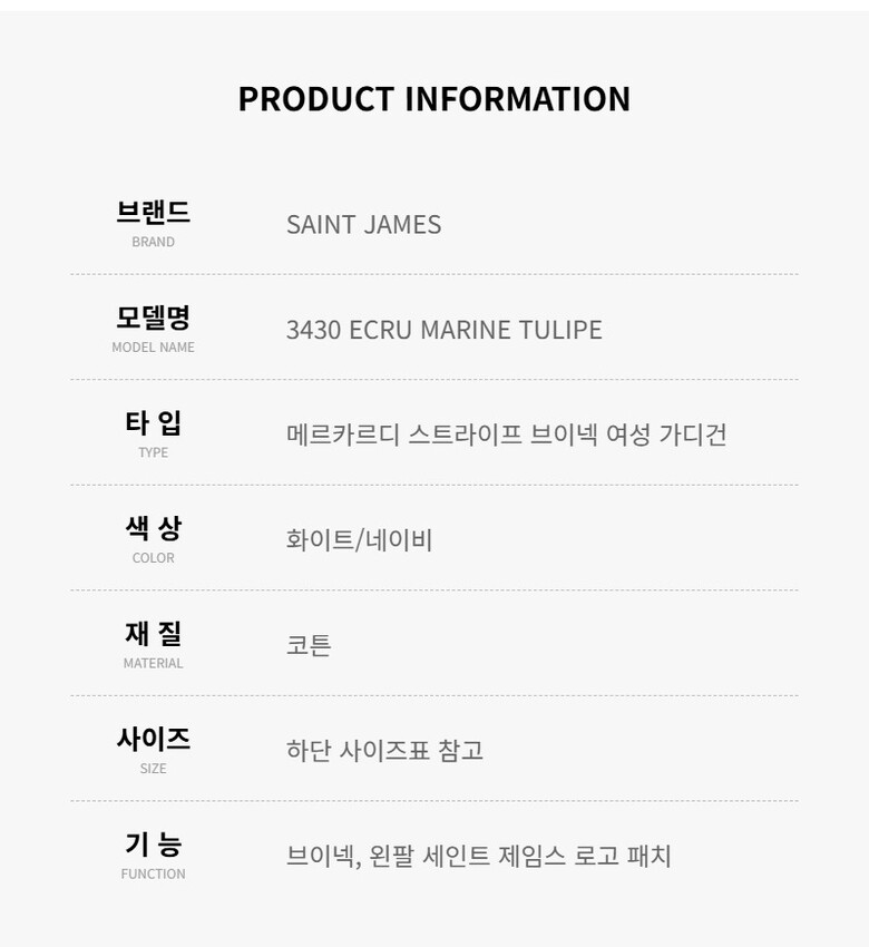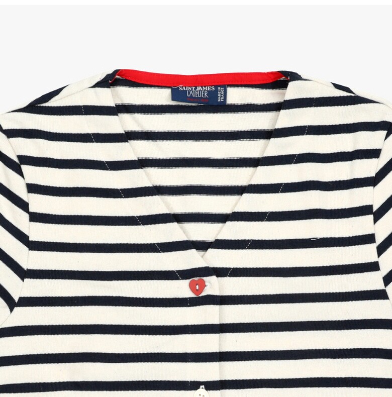 세인트제임스 3430 ECRU MARINE TULIPE 메르카르디 스트라이프 브이넥 여성 가디건