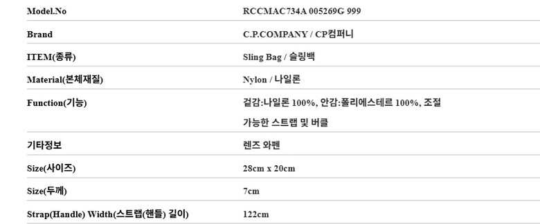 CP컴퍼니 가방 RCCMAC734A 005269G 999 나일론 B 크로스바디 남성슬링백 당일발송