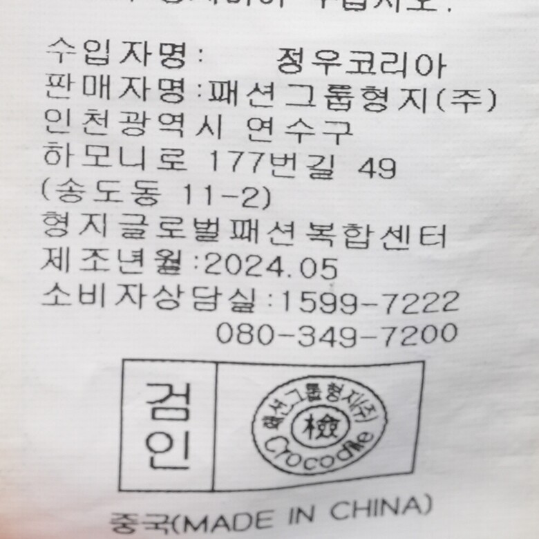 | 6. 세탁방법 및 취급시 주의사항 | 상품상세참조 |