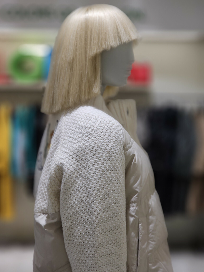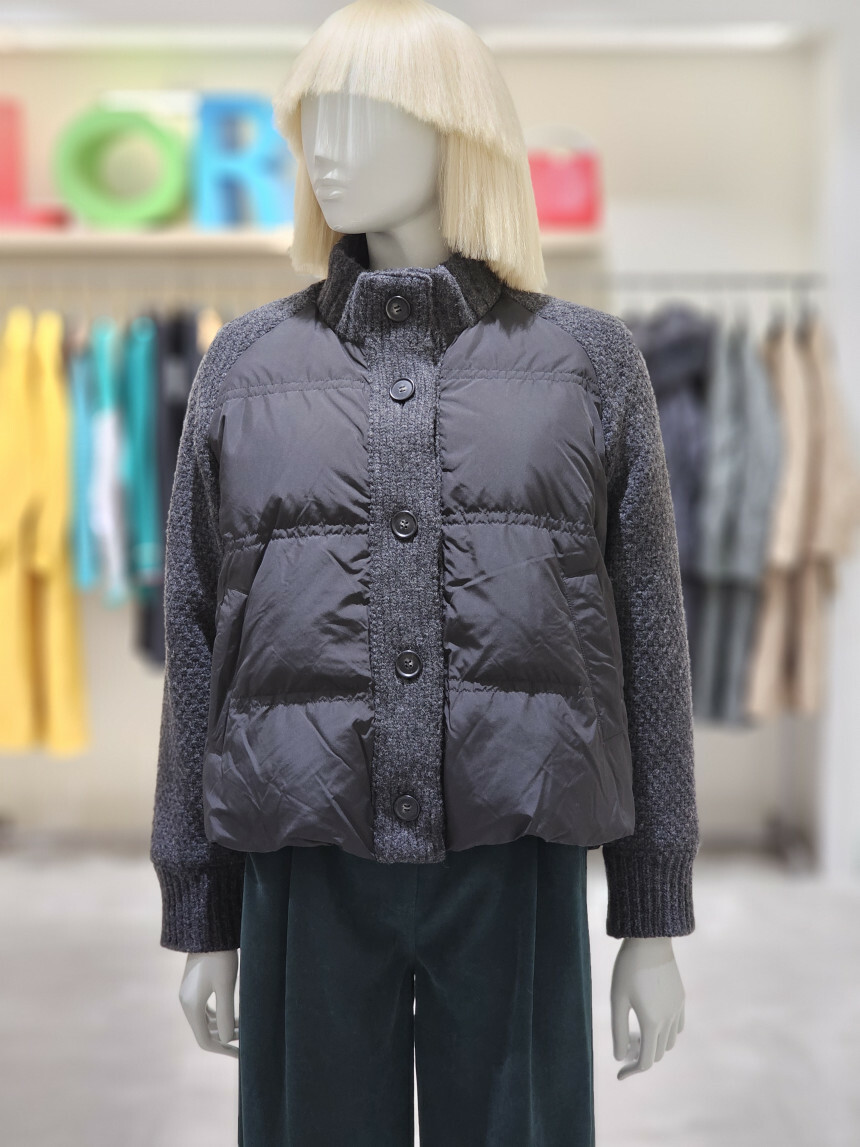 네크를 감싸는 하이넥에 센터 풀 여밈으로