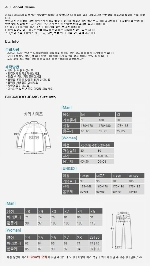 *사이즈 측정 방법에 따라 1~2CM 정도의 차이가 발생할 수 있습니다