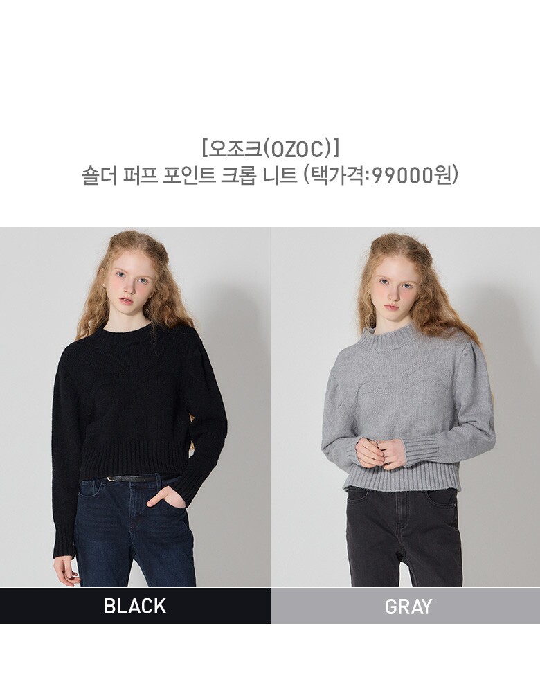 [오조크(OZOC)] 숄더 퍼프 포인트 크롭 니트 (택가격: 99000원)