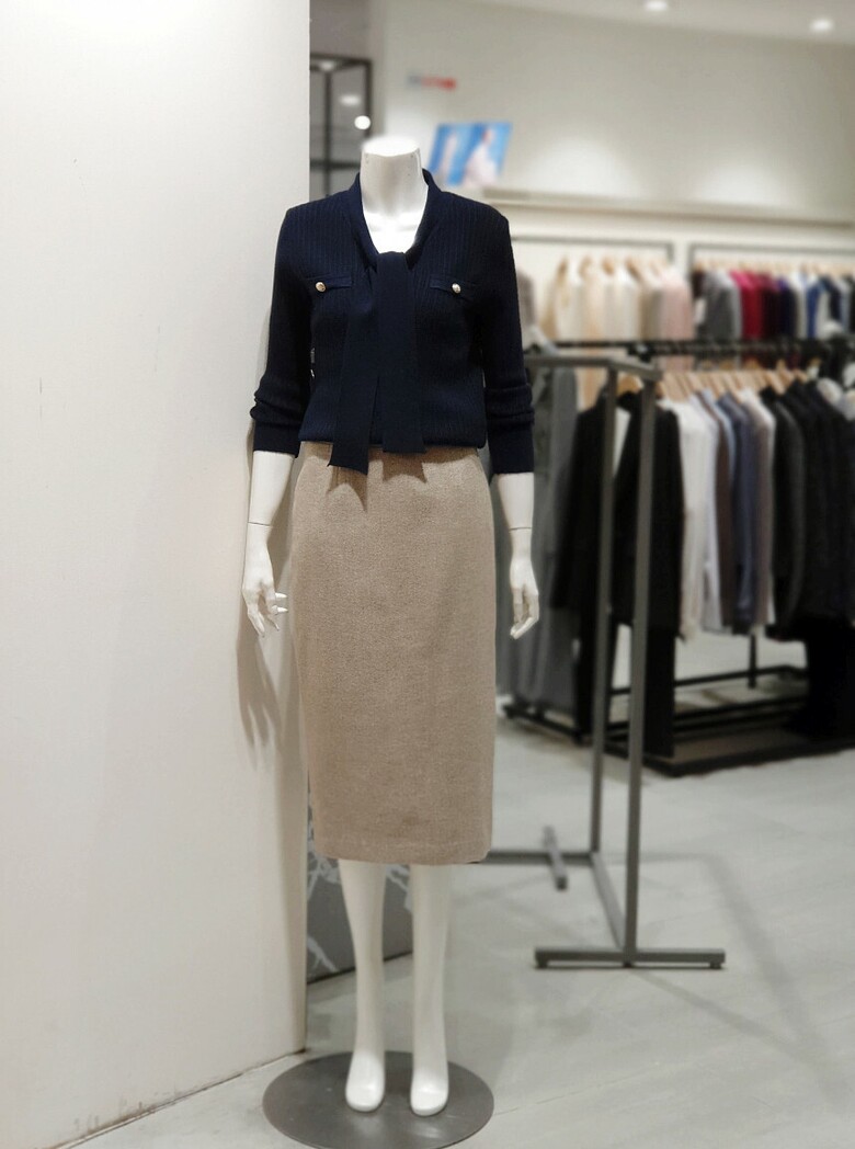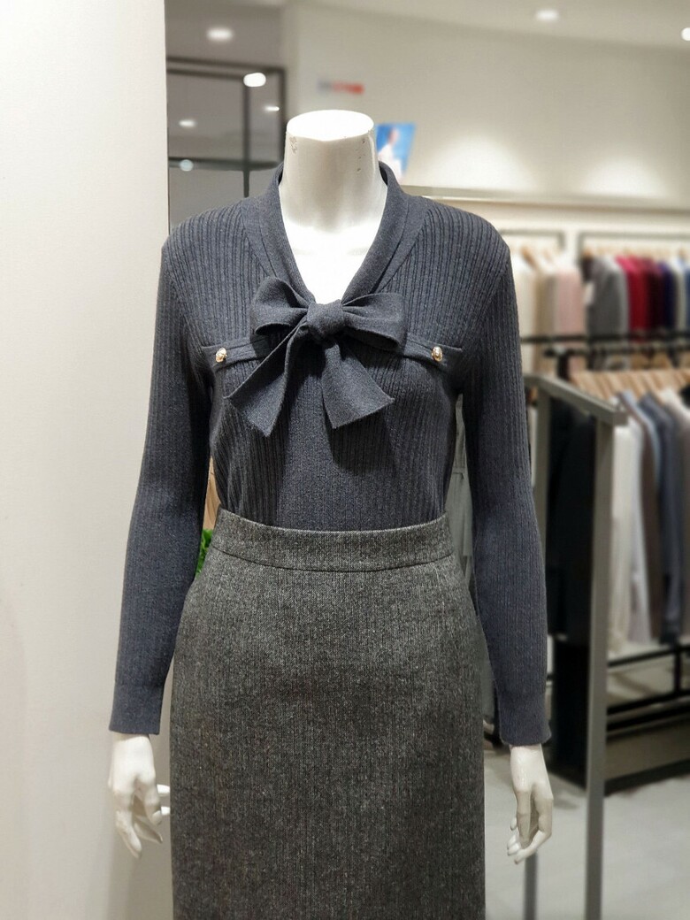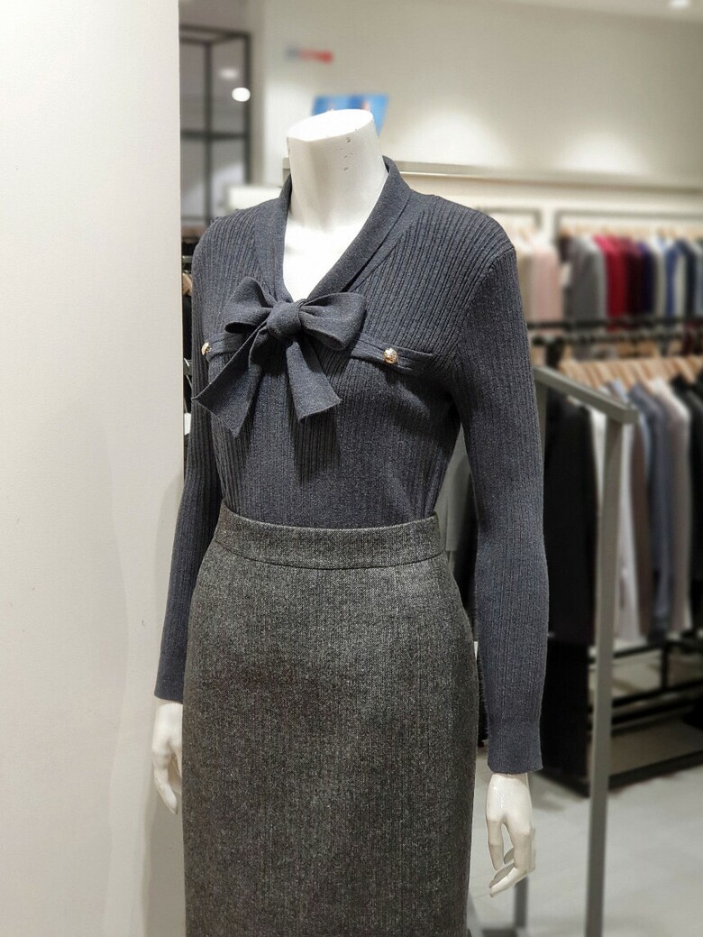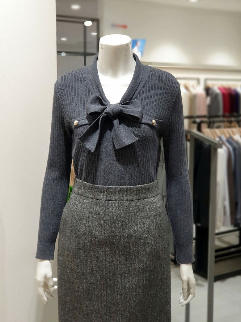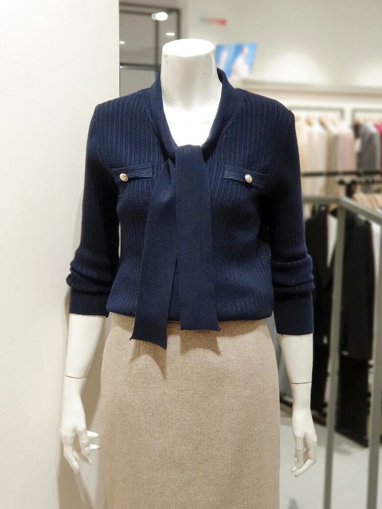 타이 넥 라인으로 포인트를 주는 페미닌한 무드의